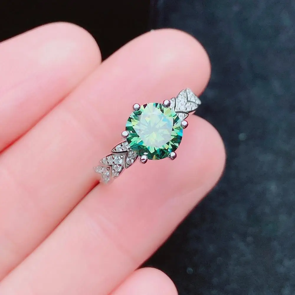 Кольцо с муассанитом Geoki VVS1, роскошное 925 пробы Серебряное Ювелирное Украшение с круглым идеальным камнем, 1 карат, зеленый в форме пшеничных зерен
