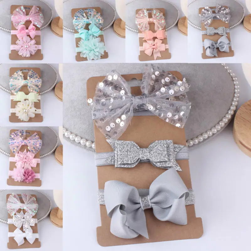 Кружевная повязка на голову с бантом для девочек, 3 шт.комплект
