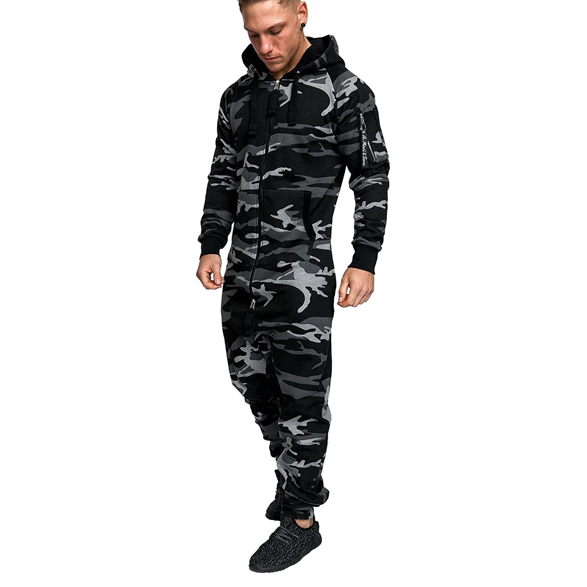 Осенне-зимний мужской флисовый комбинезон с капюшоном, камуфляжный повседневный комбинезон на молнии с длинными рукавами, мужские брюки, новинка 2020