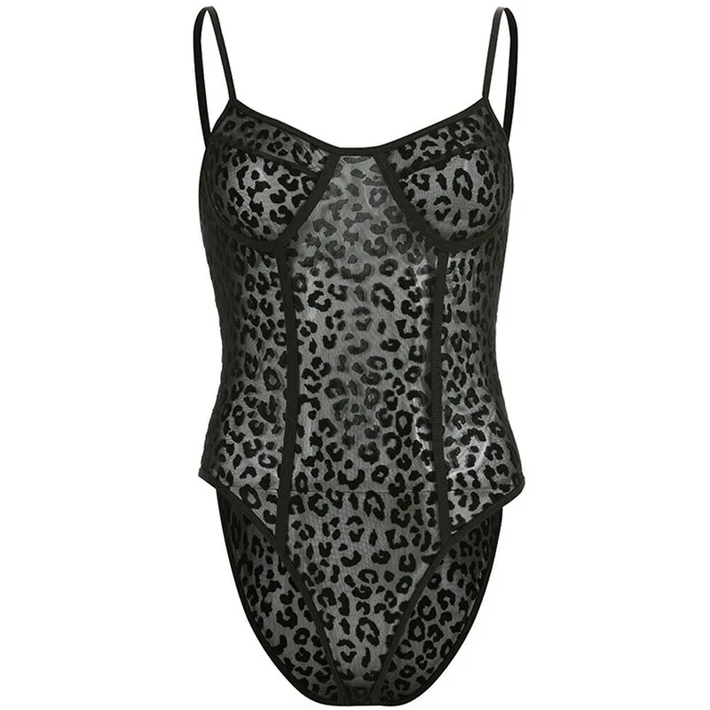 Женское сексуальное боди с леопардовым принтом и цветочной вышивкой, Кружевное облегающее боди, черный комбинезон, летние комбинезоны для женщин