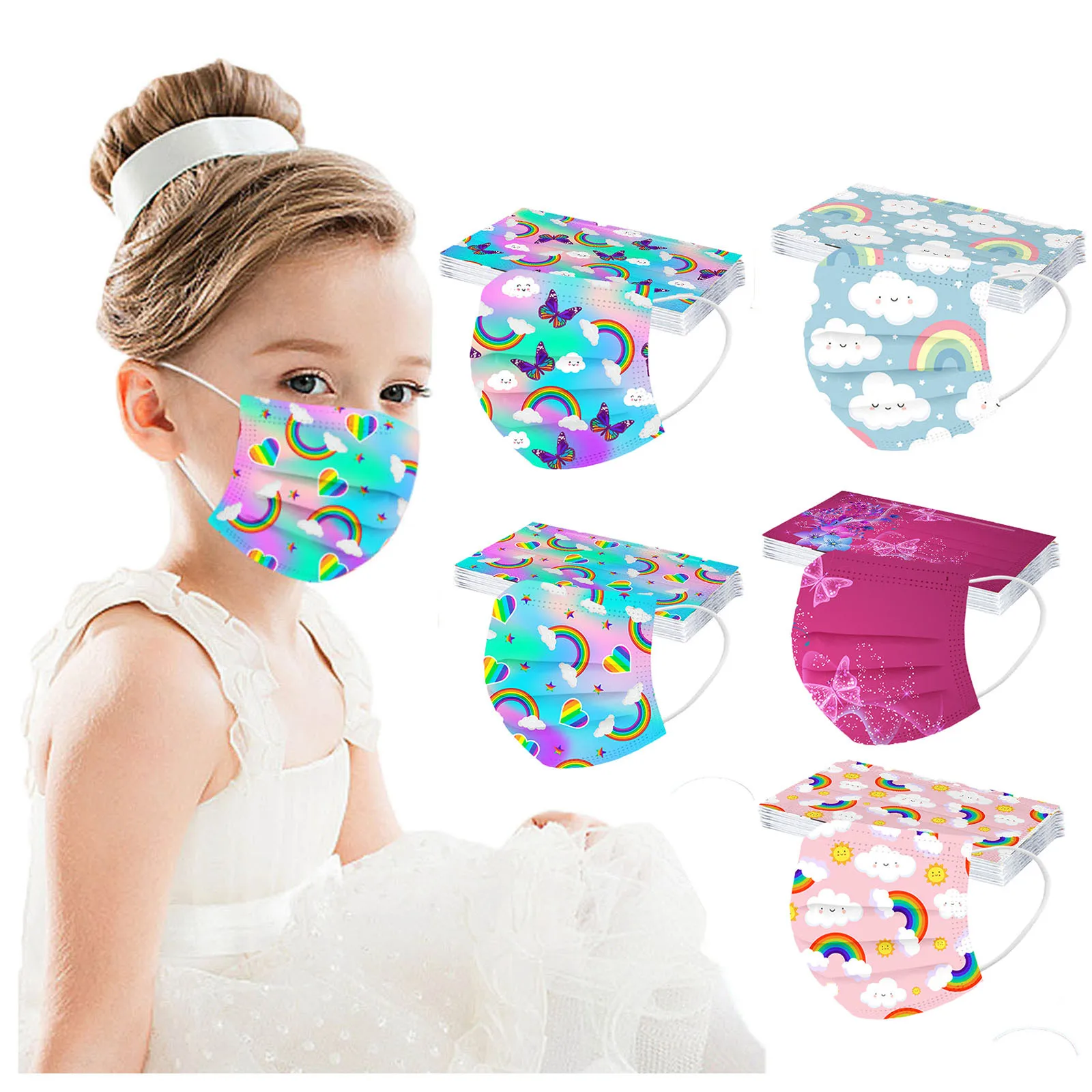 50 шт., детская трехслойная маска для лица, из нетканого материала