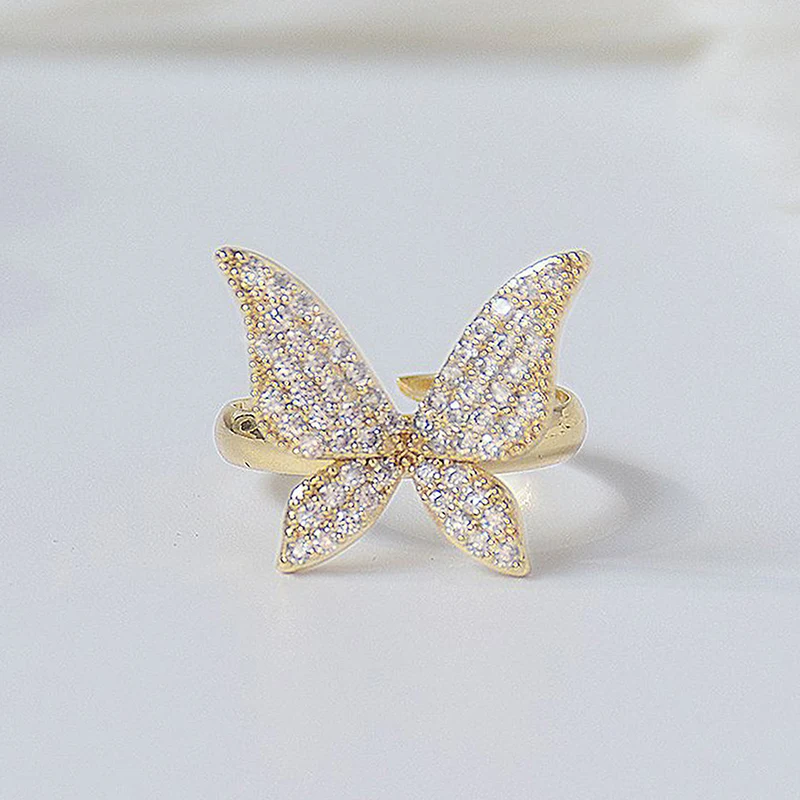 Женское кольцо из настоящего золота 14 к с крупными блестящими бабочками и фианитами, регулируемое антиаллергенное кольцо из циркония ААА, ювелирные изделия, подвески, аксессуары