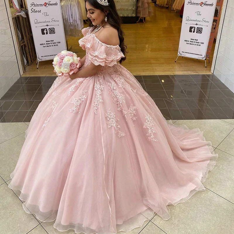 Изысканные розовые платья Quinceanera, бальное платье, кружевное платье для выпускного вечера, дешево, конфетные, 15-летние Вечерние платья на выпускной