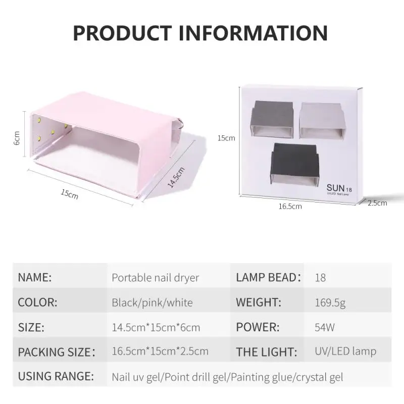 1 шт. НОВАЯ Портативная Складная Сушилка для лака для ногтей УФ-гель светодиодный 54 Вт отверждаемый гель быстрая сушка таймер лампа для дизайна ногтей USB Сушилка для ногтей оборудование