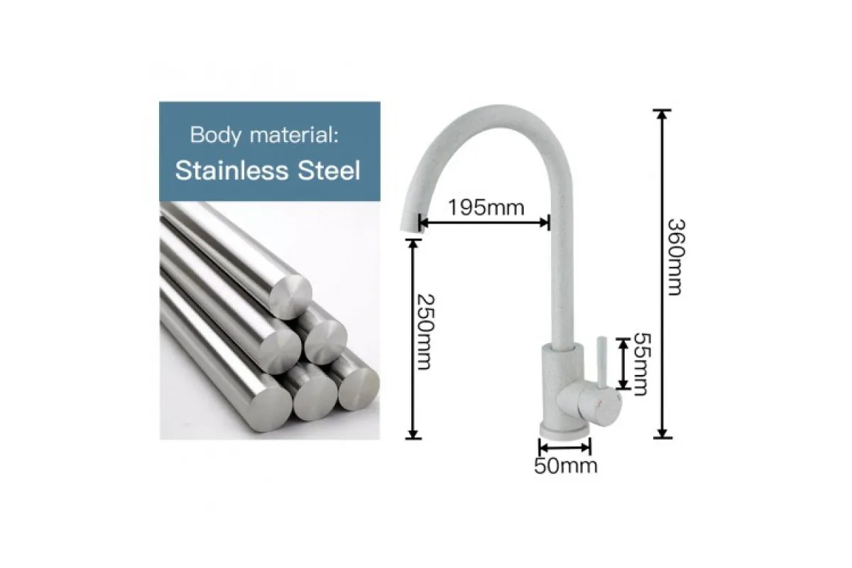 FRAP F40899-2, Смеситель для кухни (светло-серый, нержавеющая сталь, картридж 35 mm, крепление гайка)