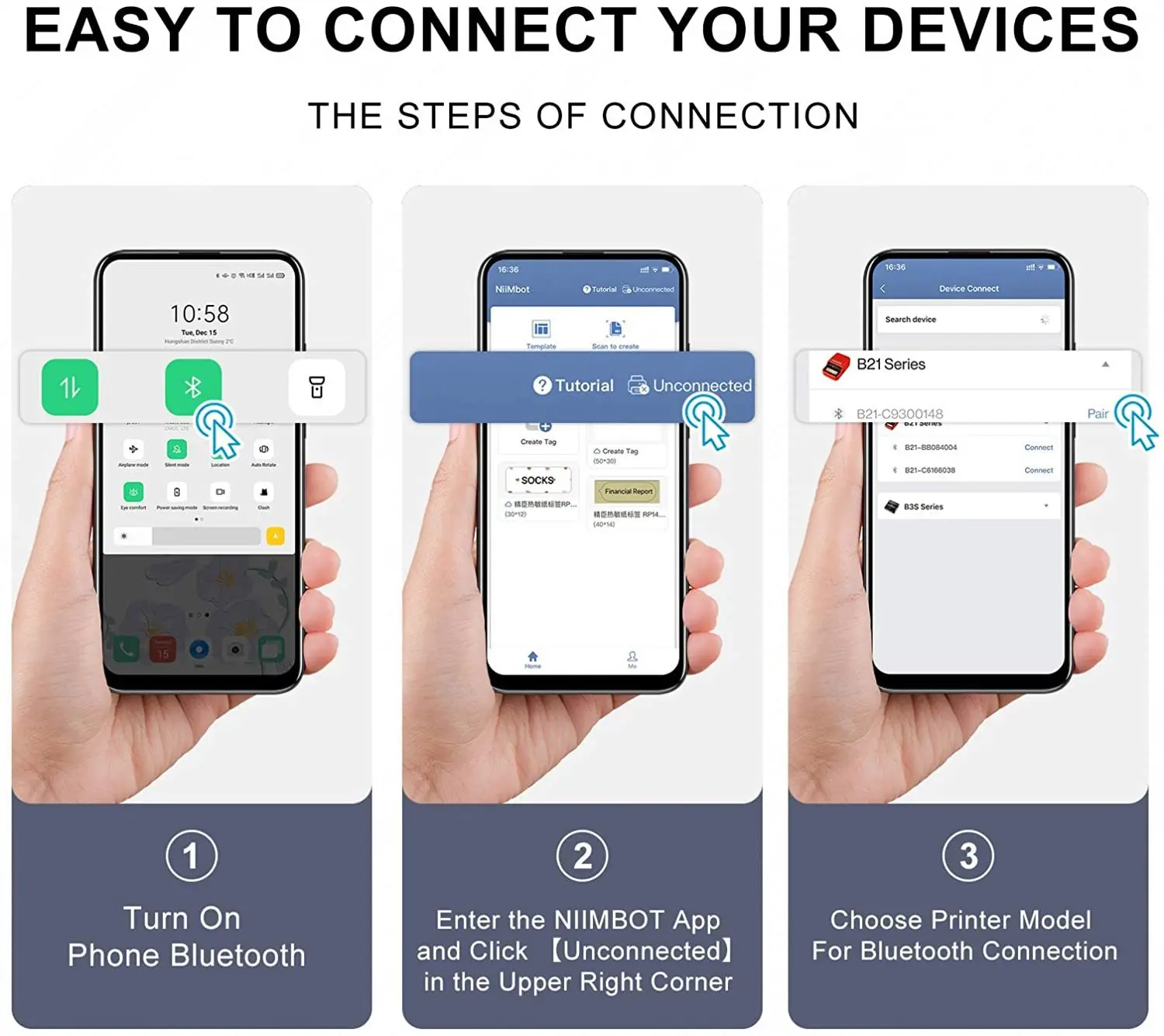Беспроводной термопринтер Niimbot B21 для этикеток, наклейки, карманный мини-Штрих-код Bluetooth портативный, ценники, принтеры, бесплатное приложение
