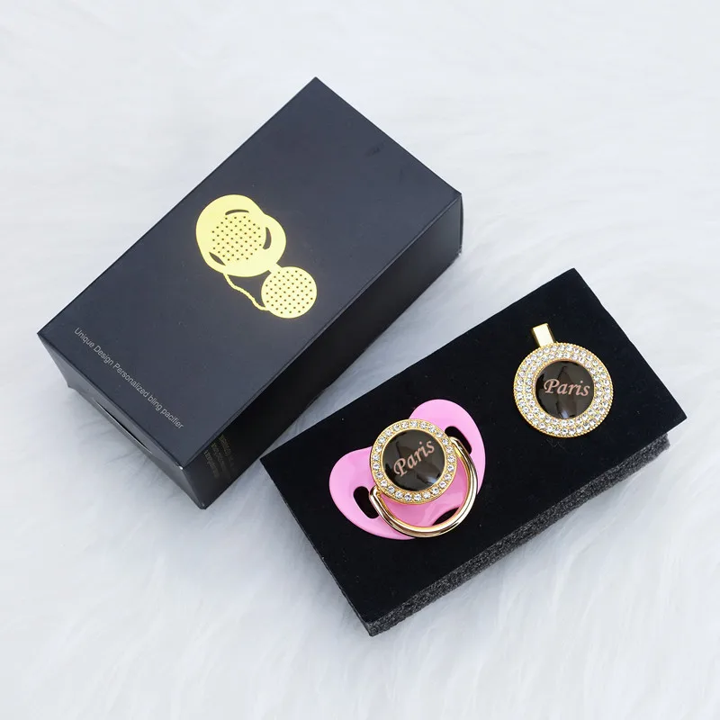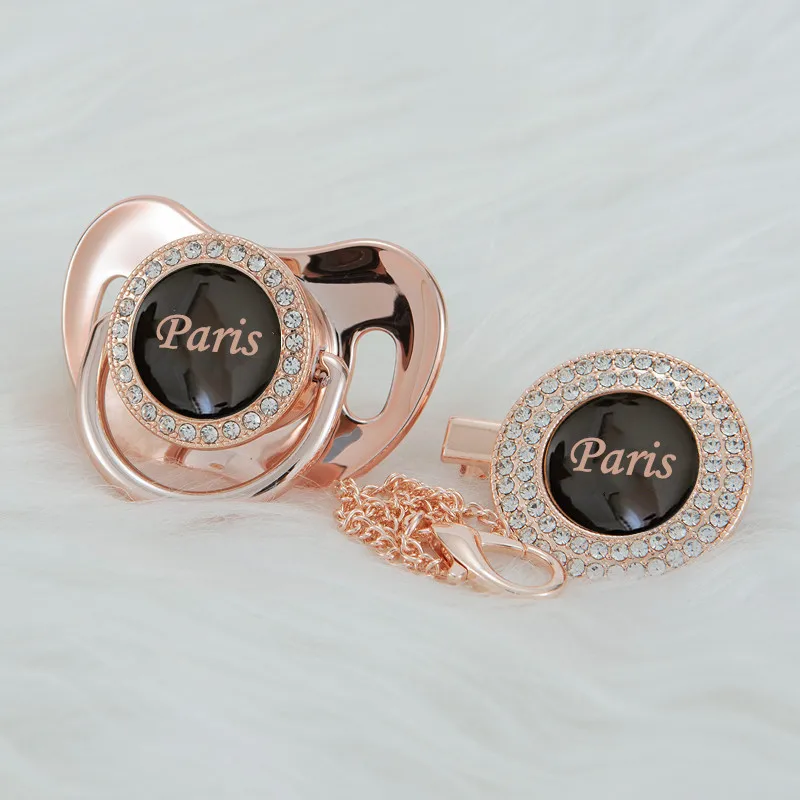 Пустышка с блестками и зажимом для соски MIYOCAR, цвет розовое золото, без БФА, роскошный уникальный дизайн
