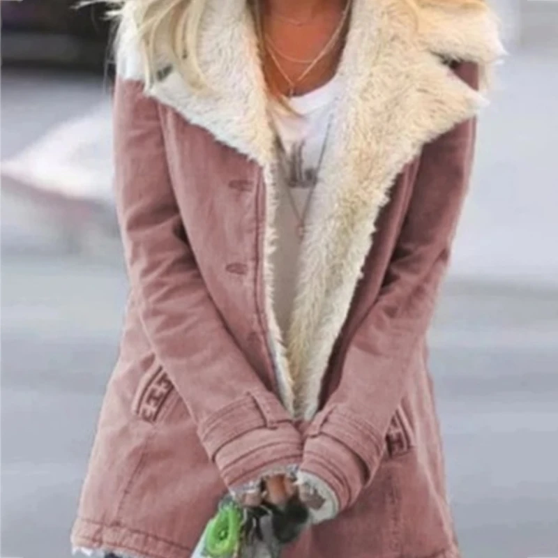 Плюшевое зимнее женское повседневное пальто с отложным воротником, ...