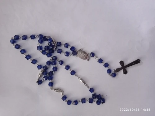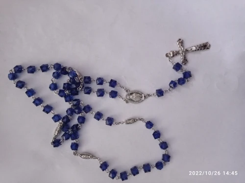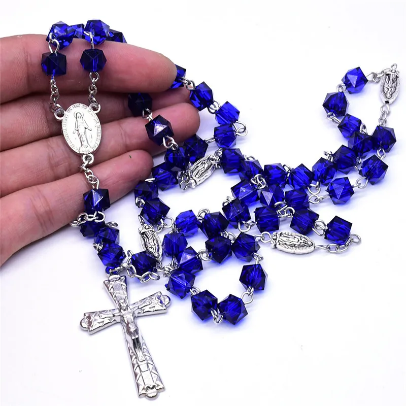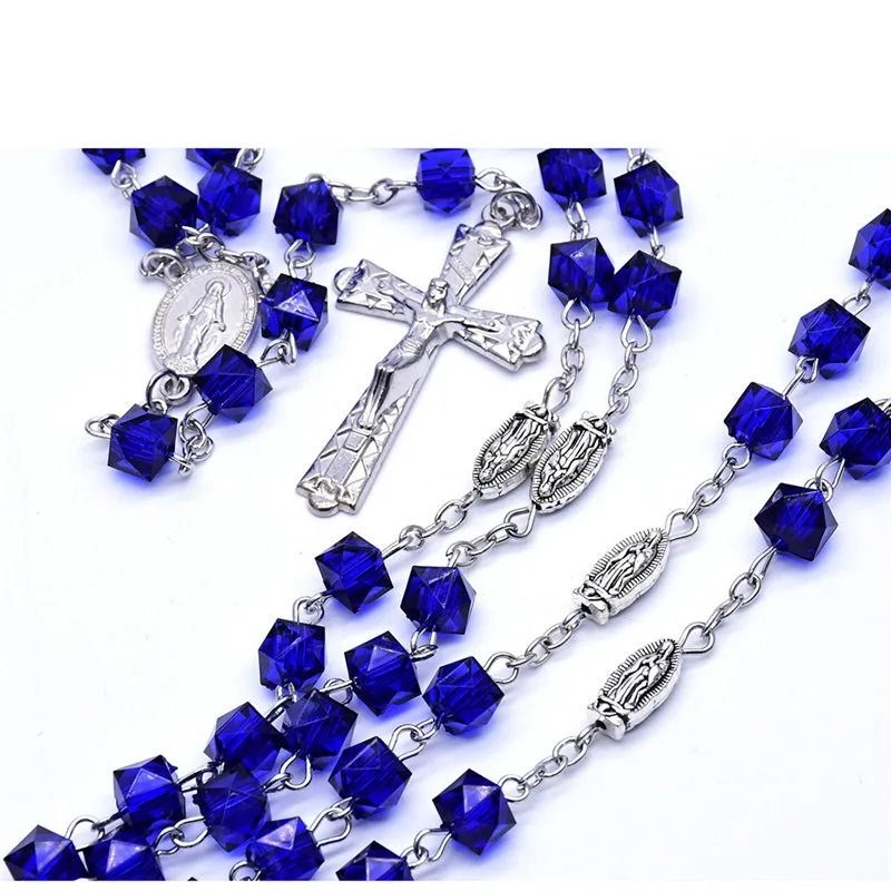 Католические Четки квадратные синие стеклянные бусины ожерелье Дева Мария Иисус ювелирные изделия ручной работы для женщин