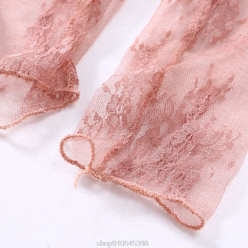 Женская прозрачная сетчатая Базовая Блузка с длинным рукавом и ложным воротником с вышивкой и цветочным кружевом свободный пуловер Топы N14 20 Прямая поставка