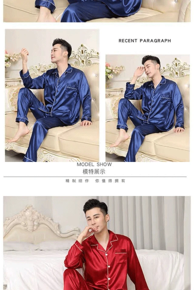 Пижамный комплект мужской, Повседневный, с длинным рукавом и отложным воротником