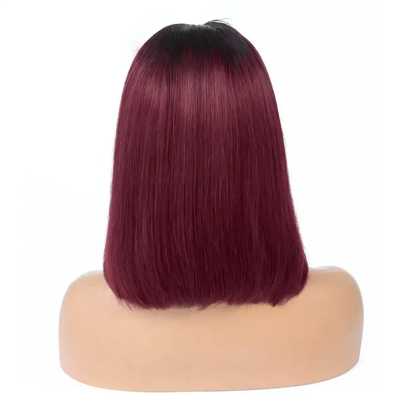 Короткий короткий парик из человеческих волос с кружевом 13x 4 1B 99J, бразильский парик из человеческих волос цвета Бургунди с эффектом омбре, винно-красный, 180% предварительно выщипанный, для женщин