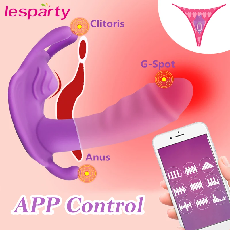 Носимый вибратор с приложением для женщин, фаллоимитатор для точки G, Стимулятор клитора, Беспроводной удаленный вибратор-бабочка, трусики, ремешок на фаллоимитаторе, Вибратор