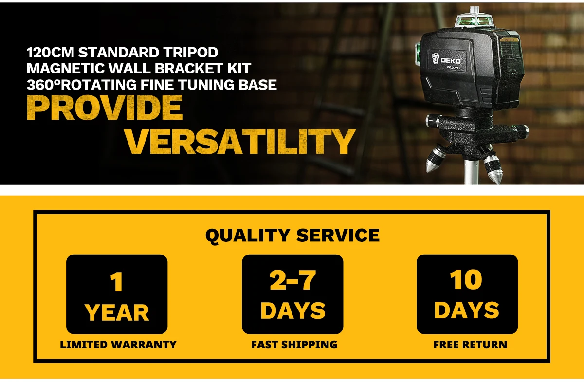 Лазерный уровень DEKO DKLL12PB, 12 линий, Горизонтальные и вертикальные перекрестные линии, самовыравнивающийся, для использования в помещении и на улице