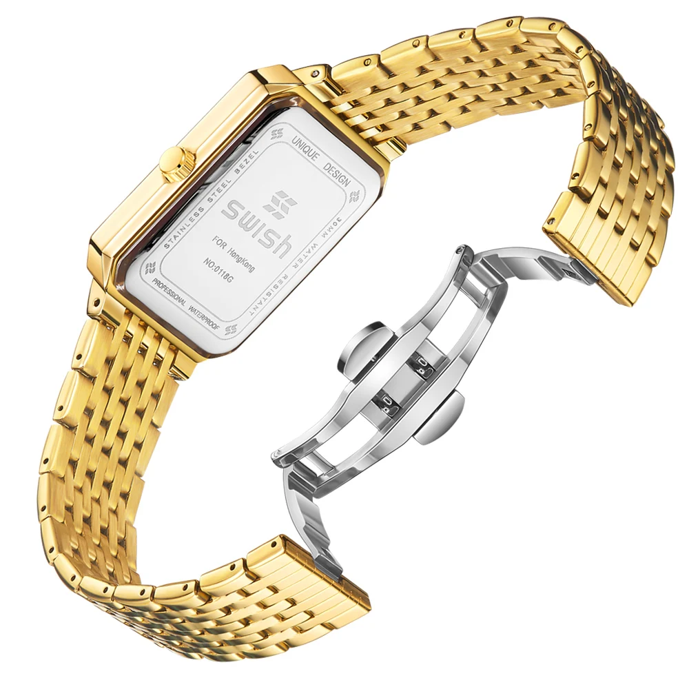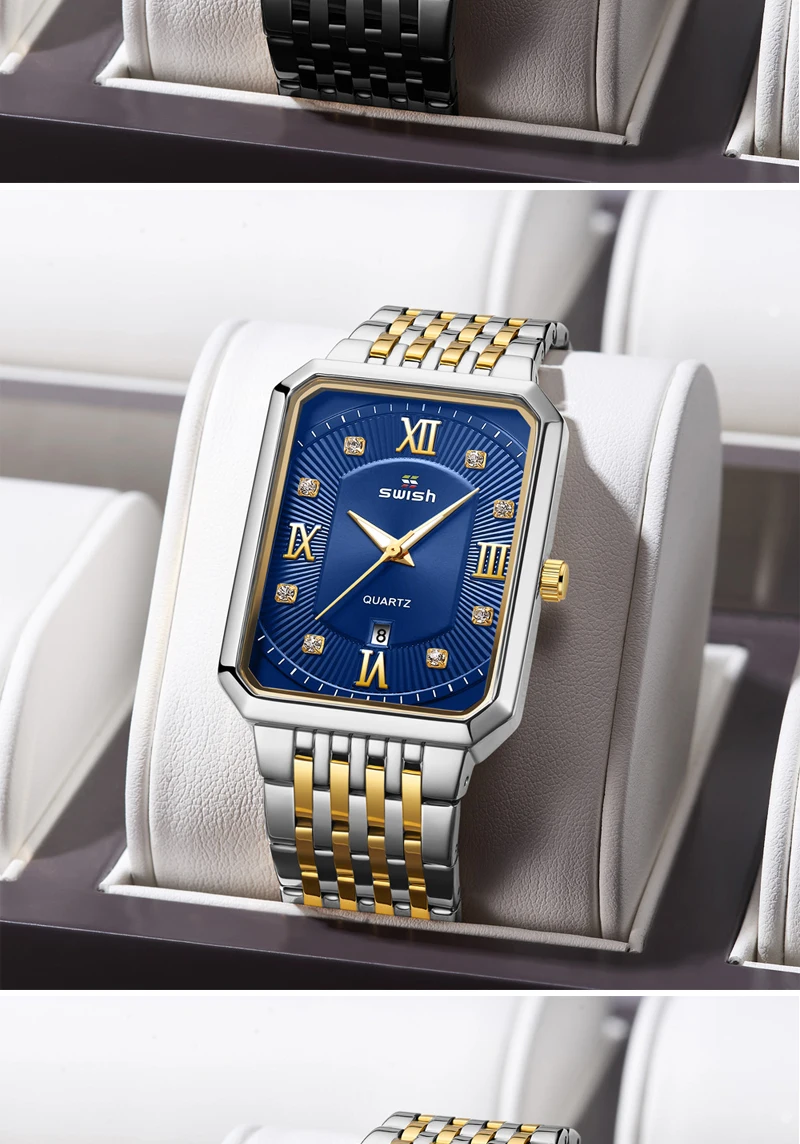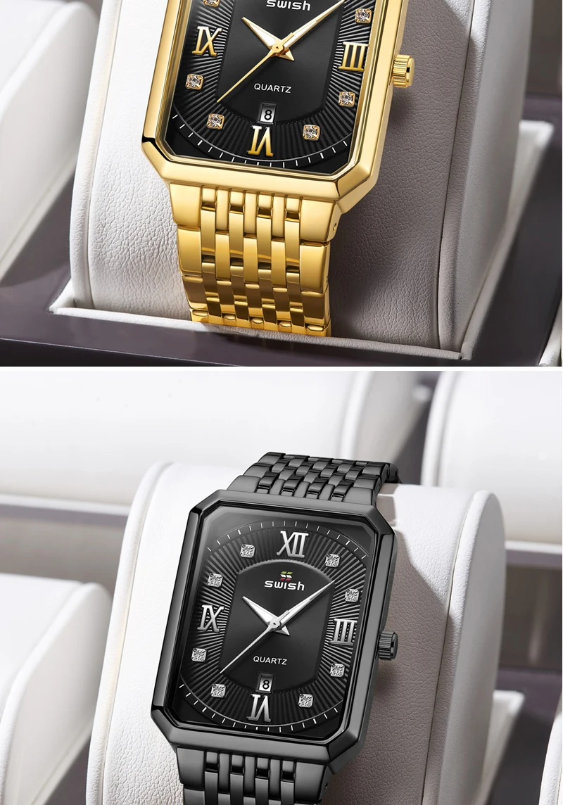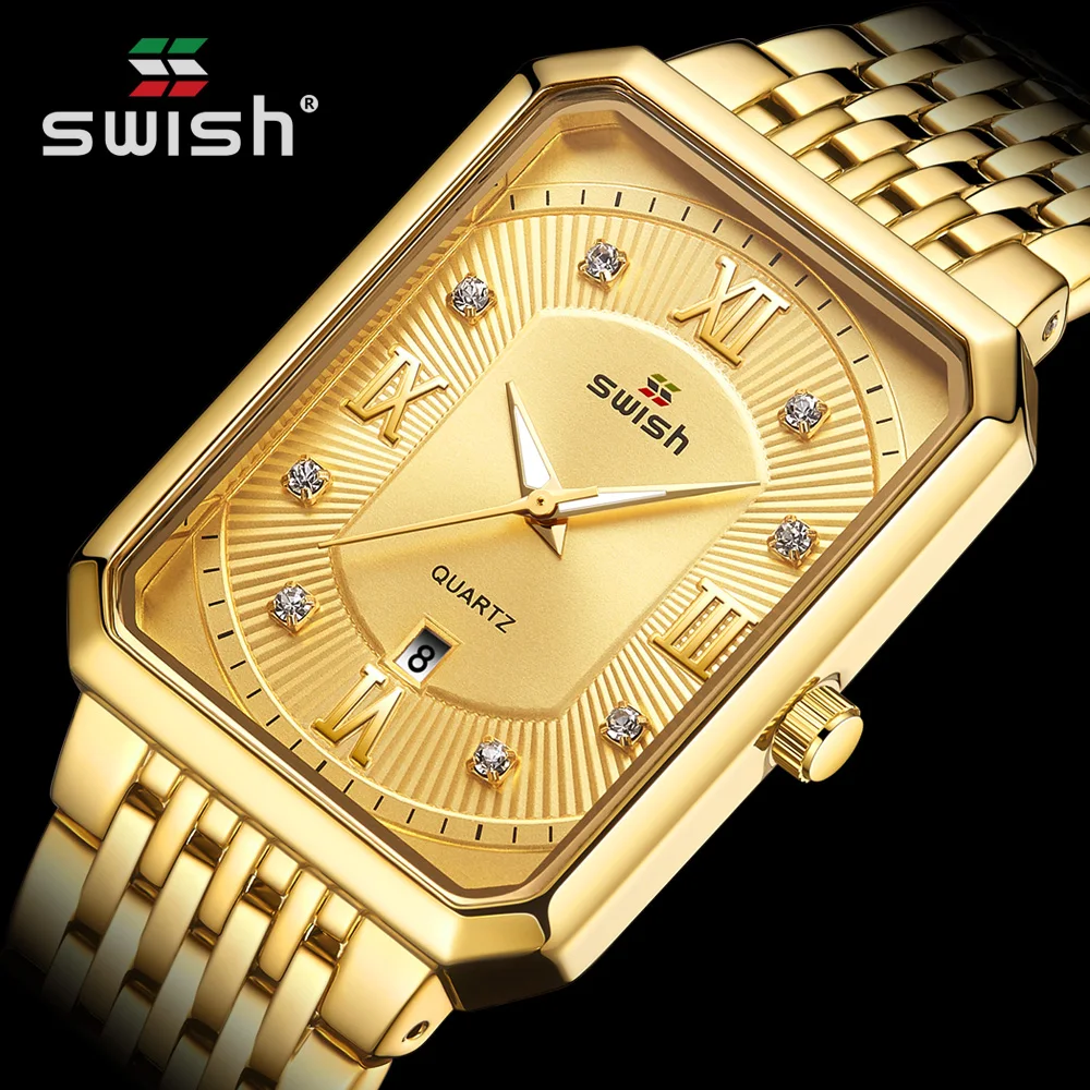 Часы наручные мужские золотистые, брендовые Роскошные Модные прямоугольные водонепроницаемые деловые спортивные