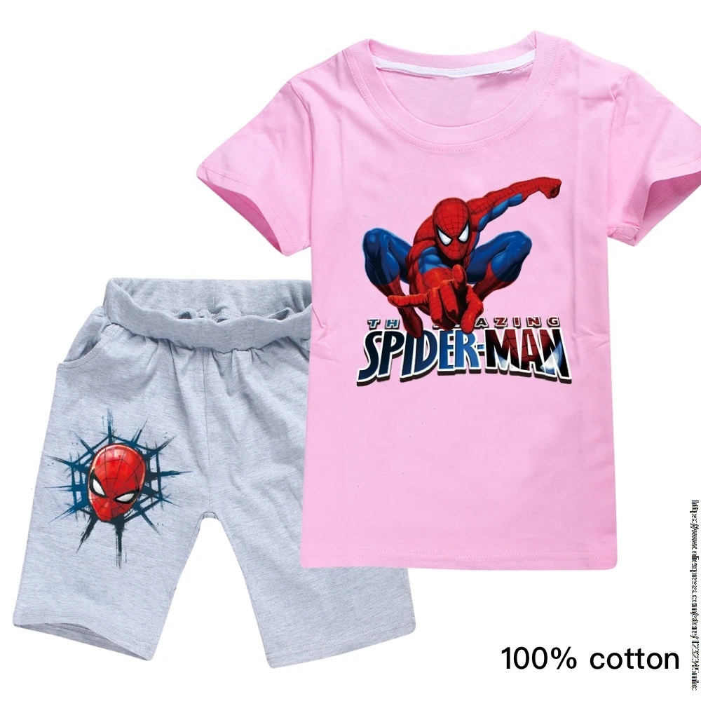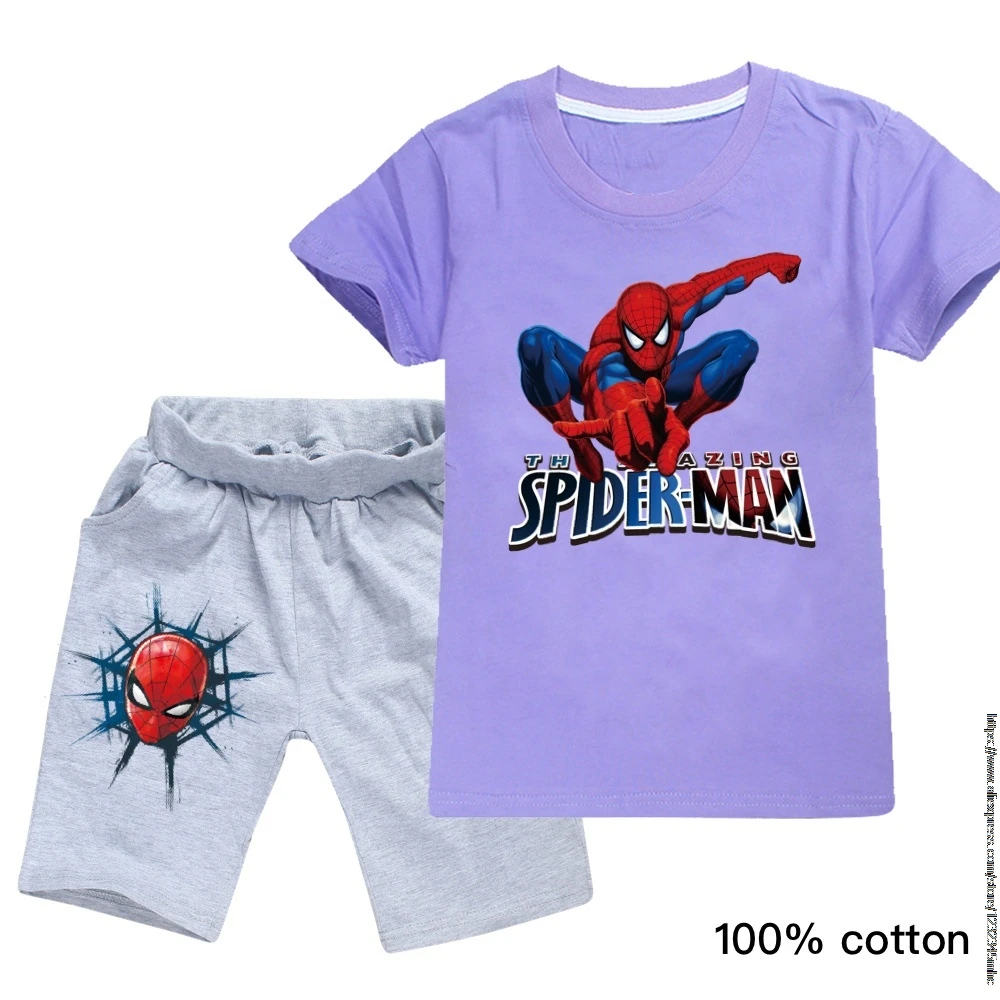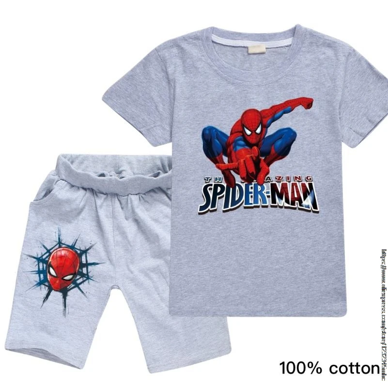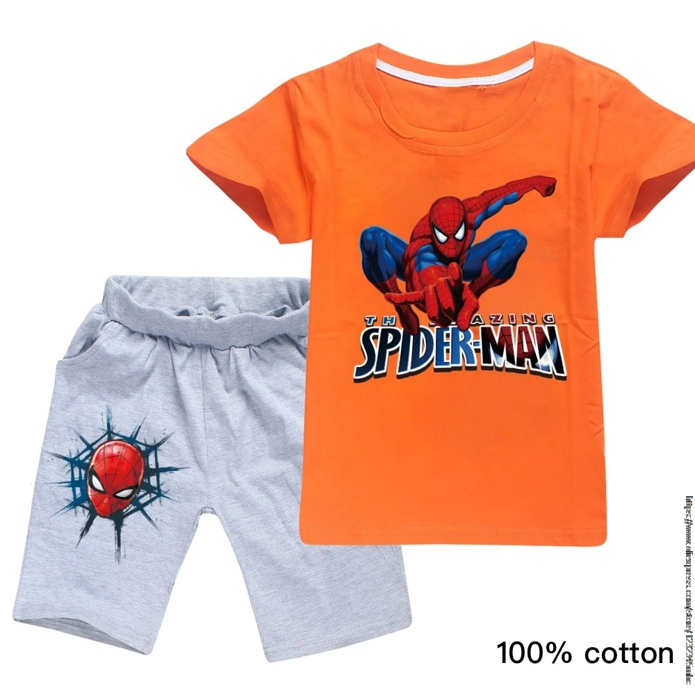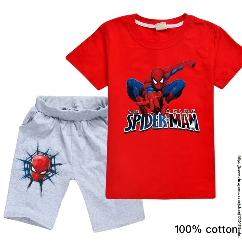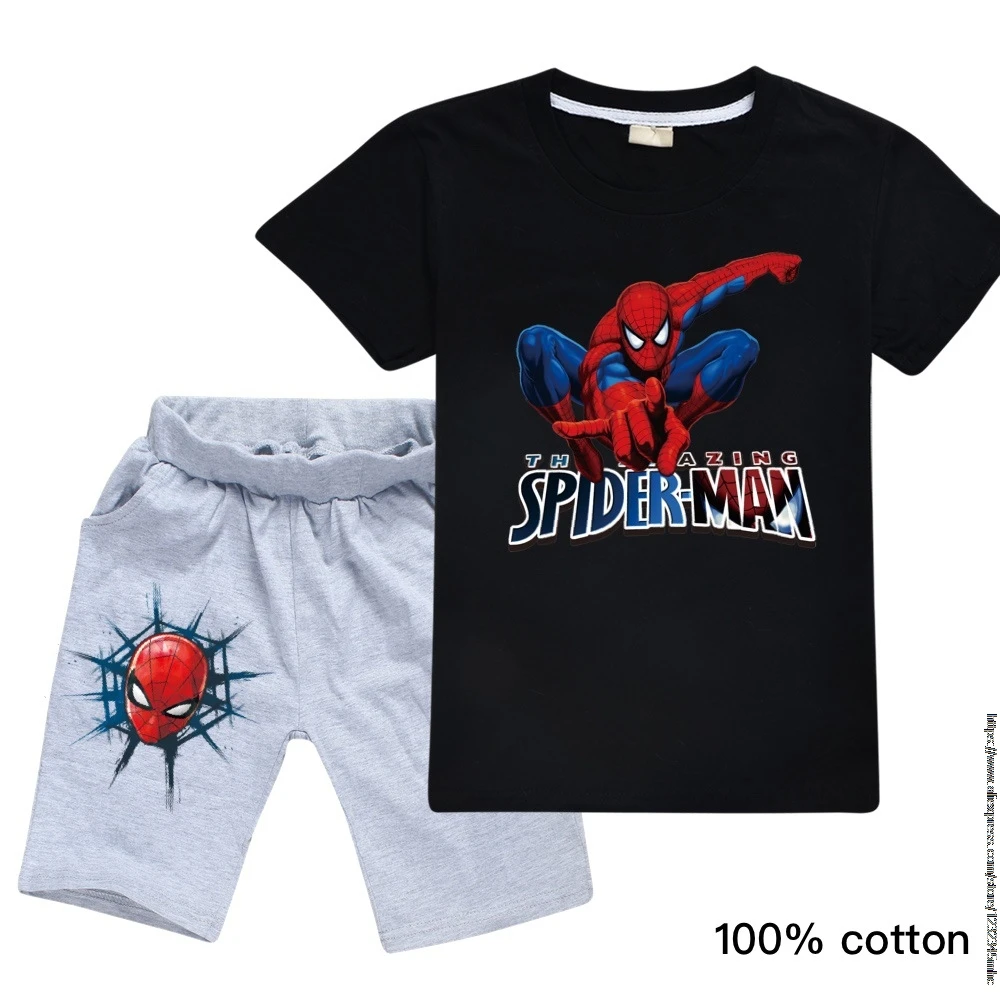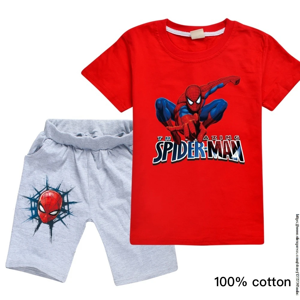Футболка Disney, комплект одежды, футболка для мальчиков детская футболка с человеком-пауком летняя футболка с короткими рукавами и принтом