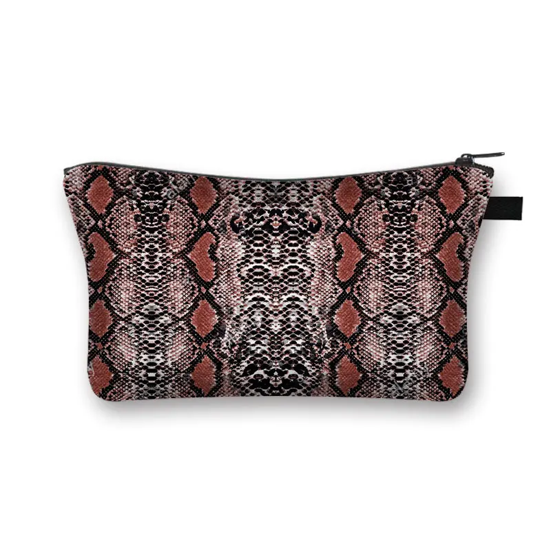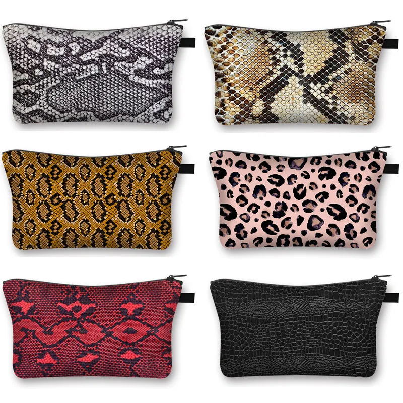 Привлекательная косметичка с принтом змеиной кожи, холщовая индивидуальная косметика для женщин и девушек, сумки для хранения губной помады, подарок