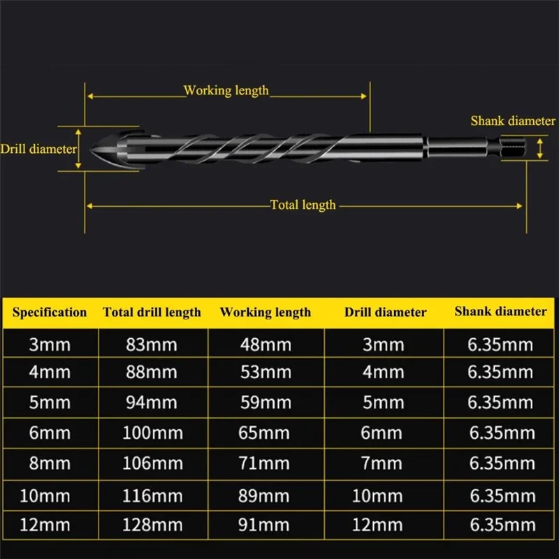 Для детей от 3 до 12 лет мм Крест шестигранные плитки биты Стекло Керамика бетона Расширитель отверстий сплав 14 "шестигранный хвостовик сверла буровые инструменты для монтажа на стену Керамика Плитки