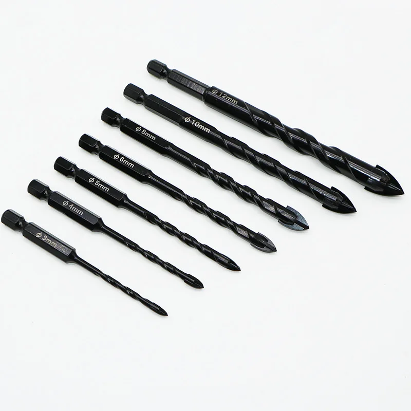 Описание: 3-12 мм твердого сплава черный Driil бит Многофункциональный перфоратор для электрической дрели Спецификация: Материал: жесткий сплав YG6X Цвет: черный Размер: 3 мм/4 мм/5 мм/6 мм/8 мм/10 мм/12 мм Применение: электрическая дрель Количество: 7 шт. Особенности: ● 3-12 мм на выбор, 3 мм/4 мм/5 мм/6 мм/8 мм/10 мм/12 мм ● Отборные Твердосплавные наконечники, хорошая износостойкость, высокая прочность, более прочный ● Острые крестообразные четыре лезвия, значительно улучшают скорость сверления ● Широкий винтовой конвейер ● Нескользящая шестиугольная ручка, не скользит Посылка включает в себя: 1 x Driil bit (опционально)