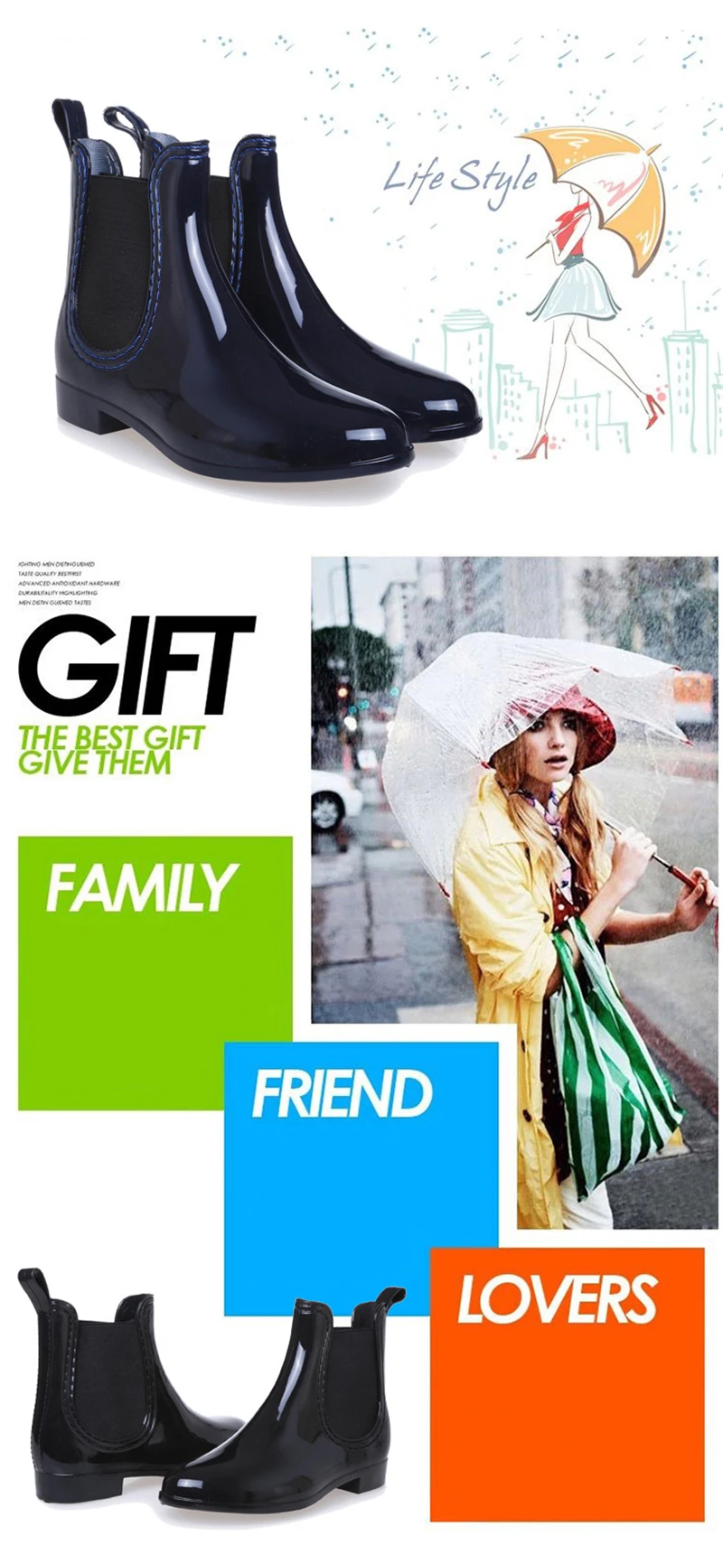 Отзыв о товаре Ботинки женские Резиновые Нескользящие, непромокаемые, черные от пользователя Покупатель