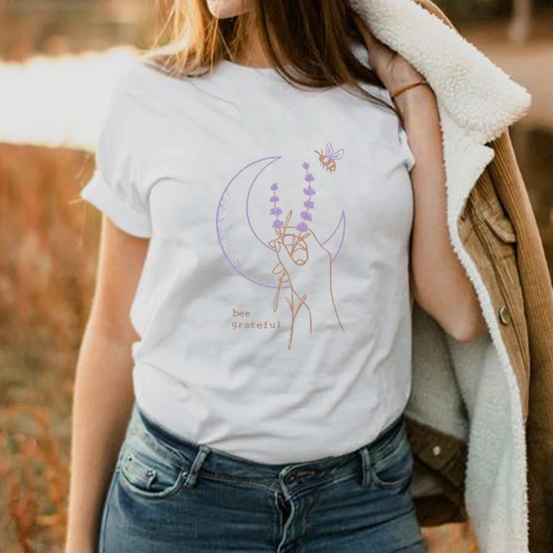 Футболка с мистическими пчелами, фазами луны, эстетическая женская ...