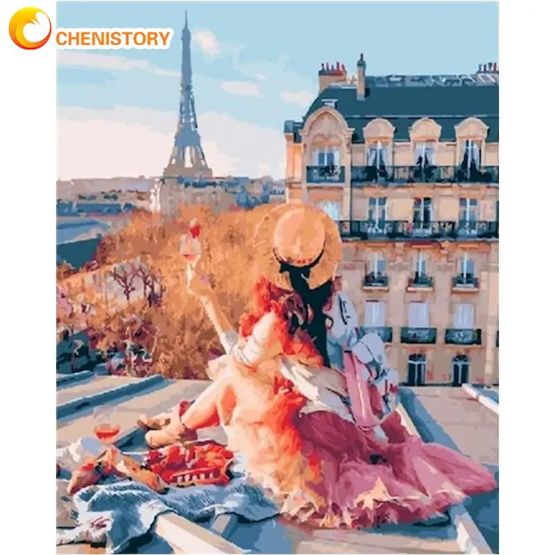 CHENISTORY женщина в крыши пейзажная живопись по номерам для взрослых собственными руками сделай сам подарок 50x65 см рамке домашний Декор стены Artcrafts