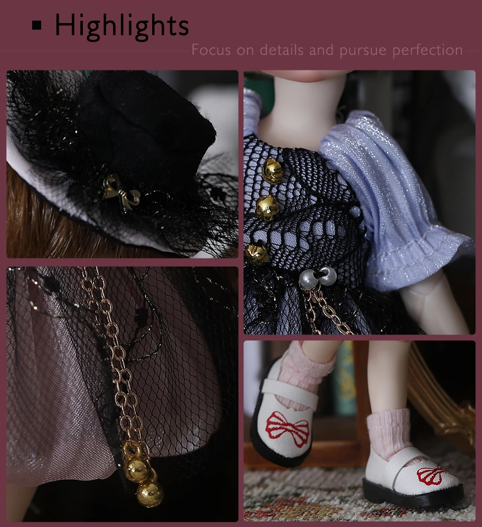 1. Сильная команда: фокусируется на кукле BJD более 10 лет, интегрирует r & d, дизайн, производство и продажи; Владеет оригинальным старшим художником, моделями, комодом, визажистом, от создания, дизайна, до формы, формовки, шлифовки, макияжа, А затем к дизайну одежды и производству до сот рабочих процедур, таких как шитье, моделирование, все завершенные опытными мастерами, представлены вашей кукле BJD каждый стиль уникален и высоко Эстетическая ценность искусства.2. Отборные высококачественные исходные материалы: отборная Высококачественная смола, изысканная и гладкая, удобная на ощупь.3. Изысканный трехмерный макияж: профессиональная команда макияжа, передовые чистые ручные технологии распыления, чтобы создать реалистичный тонкий макияж!4. Переменное моделирование DIY: гибкие соединения, сильная пластичность, различные части могут быть преобразованы по желанию и позе; Также можно изменить макияж, одежду, глаза, волосы и стайлинг.5. Персонализированные настройки: ручная работа, в соответствии с вашими требованиями, настроить вашу эксклюзивную куклу BJD.6. Изысканная подарочная упаковка: фирменная официальная Изысканная упаковочная коробка, Подарочная новая сфера, более красивая и приличная.