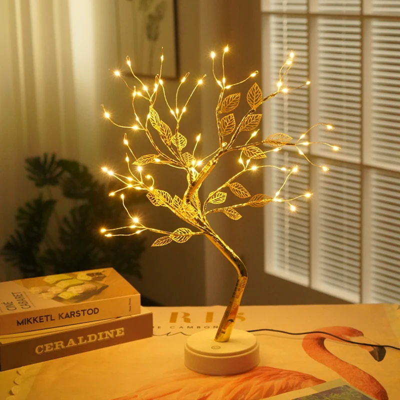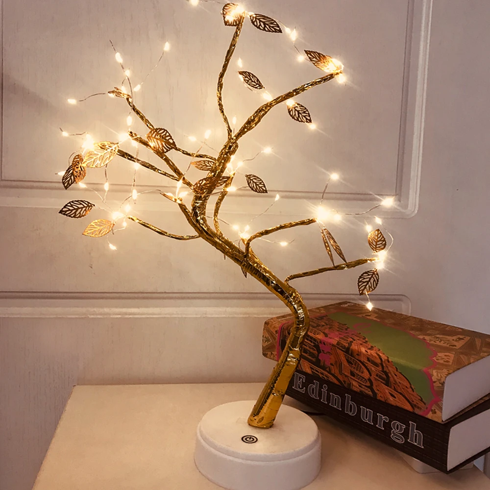 Светодиодная настольная лампа в виде золотых листьев, на батарейках, с питанием от USB, для спальни, гостиной, декоративсветильник льник