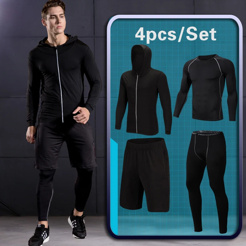 Мужской облегающий спортивный костюм для бега, комплект одежды для тренировок и бега, компрессионная Спортивная одежда для фитнеса, спортивная одежда для спортзала, быстросохнущая Толстовка для смешанных боевых искусств