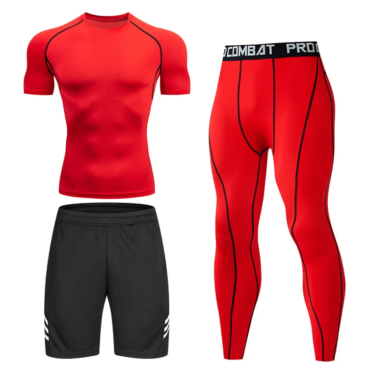 Новинка облегающая спортивная одежда мужской компрессионный спортивный костюм для тренажерного зала леггинсы футболка Rashguard MMA мужские рубашки спортивный костюм
