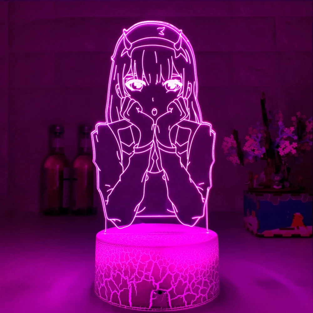 Новинка, светодиодный ночник Zero Two, Настольная 3d лампа для кровати, Декор для комнаты, светильник аниме Waifu, подарок любимой в Franxx Zero, две лампы