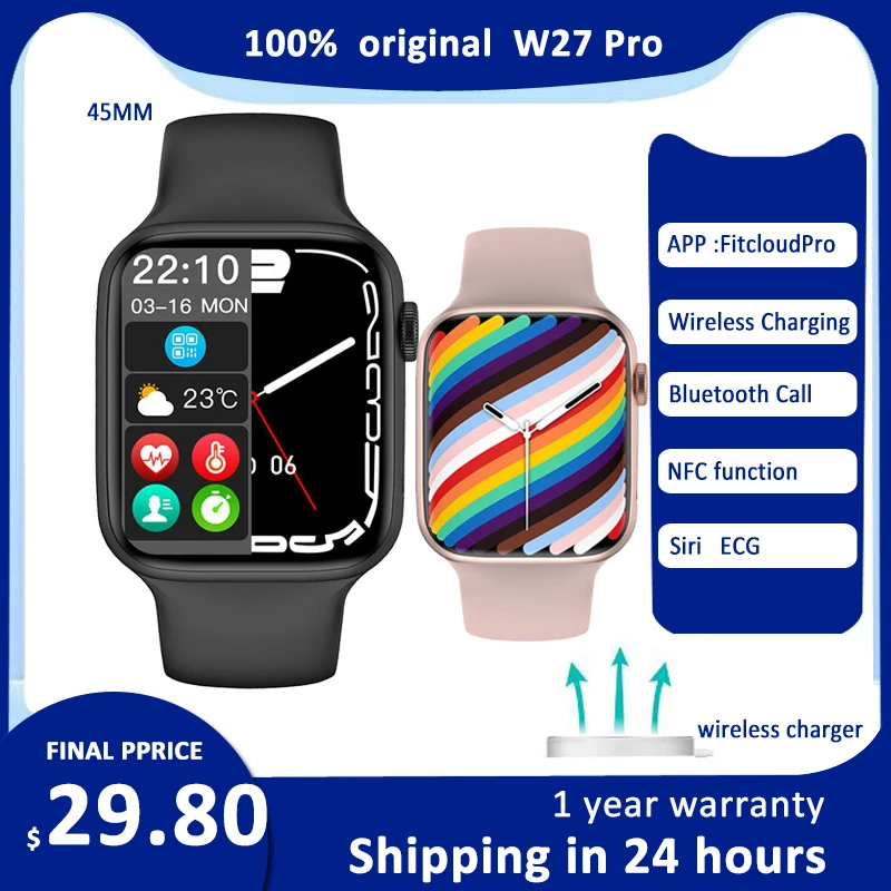 Оригинальные Смарт-часы IWO W27 Pro серии 7 для мужчин и женщин, Bluetooth-вызов, Беспроводная зарядка, пользовательский циферблат, Смарт-часы с Полноразмерным сенсорным экраном