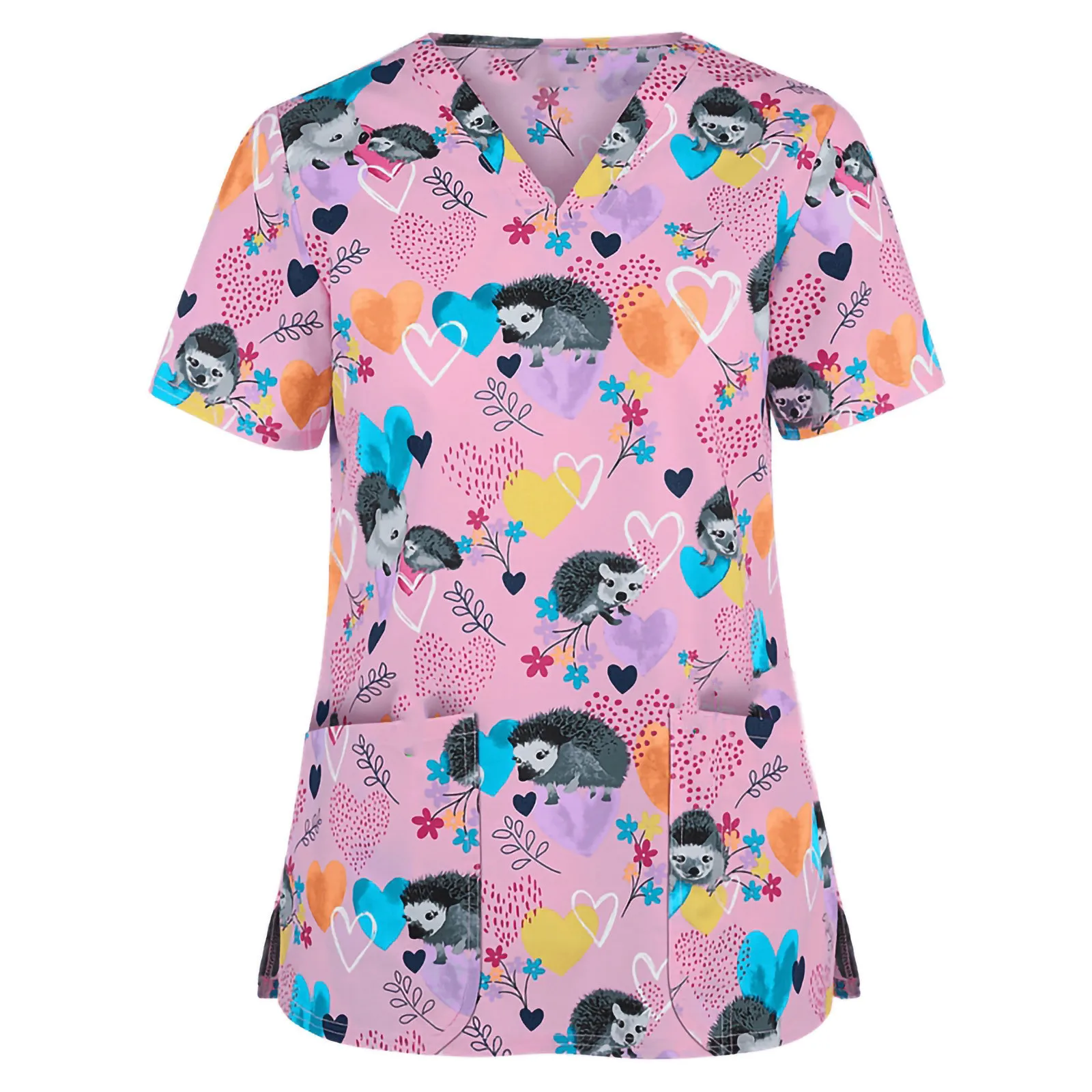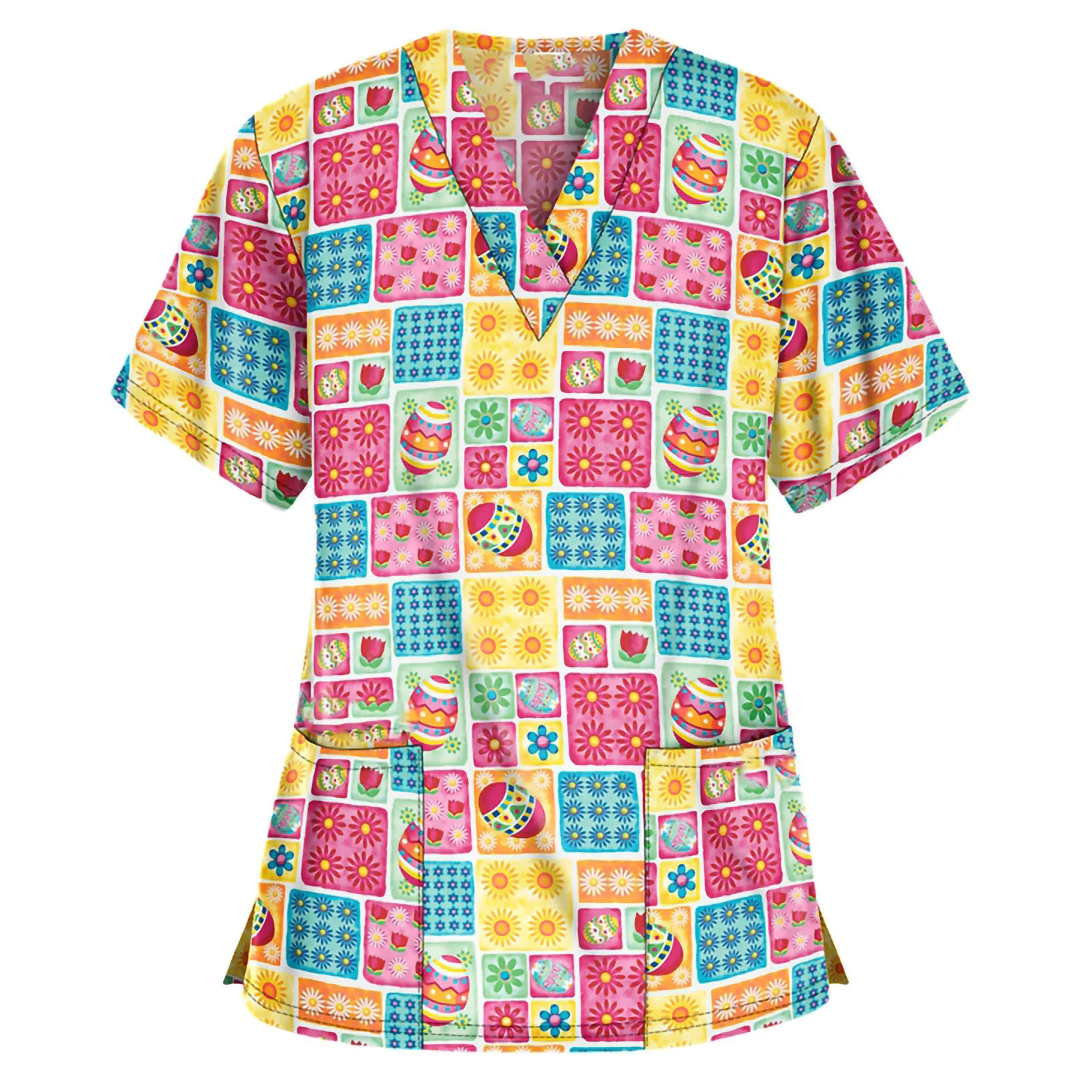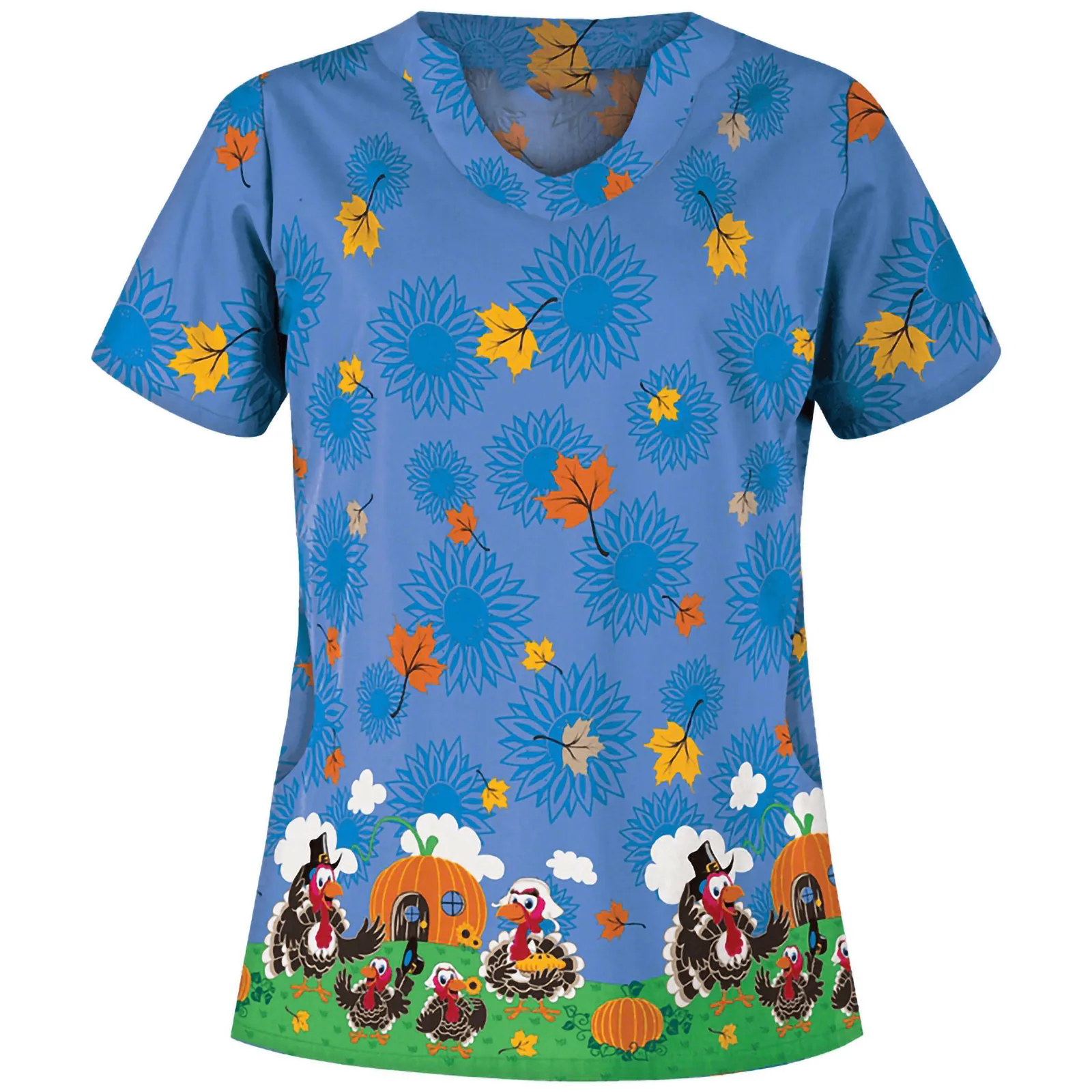 Женские топы, рубашка с коротким рукавом и V-образным вырезом, Рабочая форма, Рождественская форма на День Благодарения, костюм с коротким рукавом для домашних животных