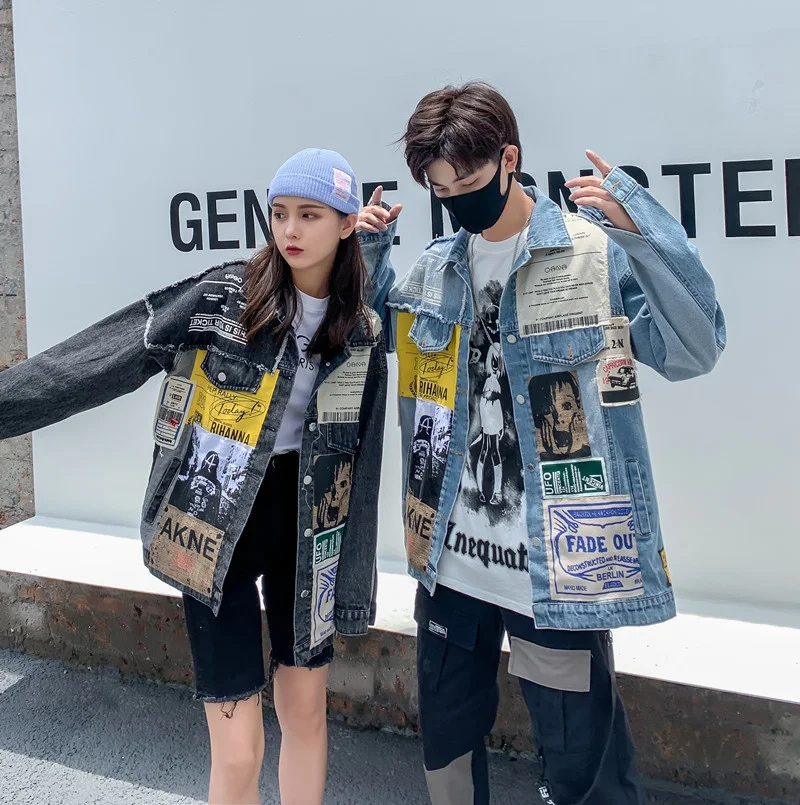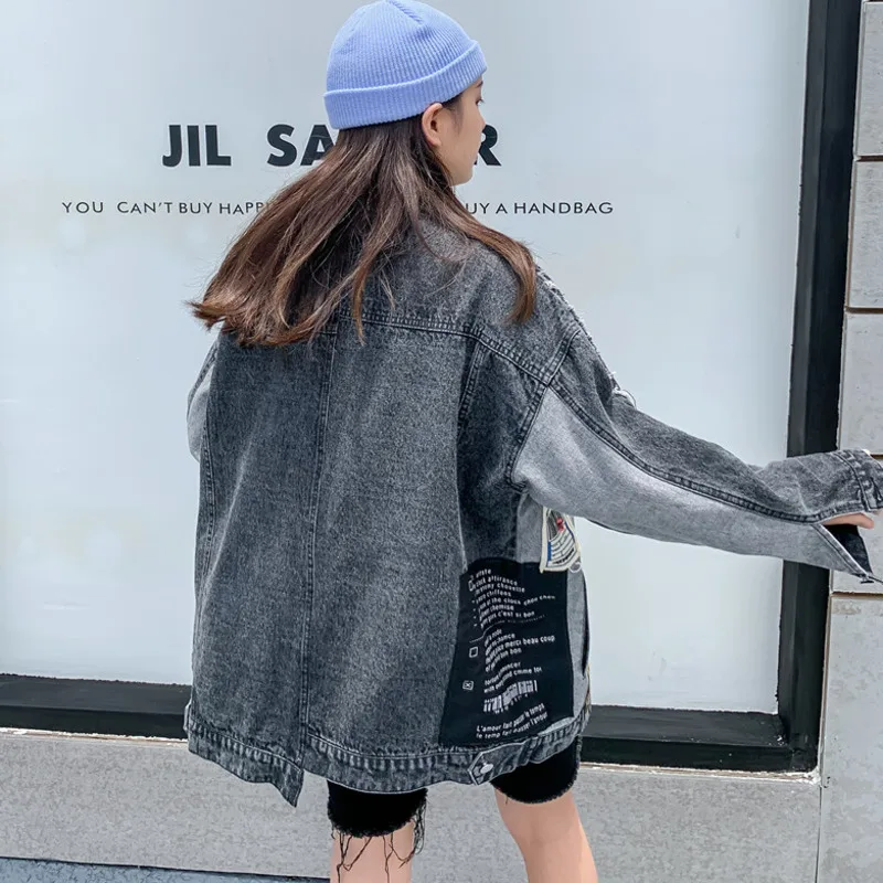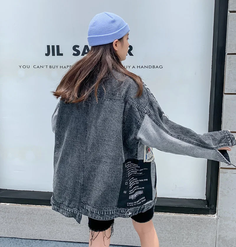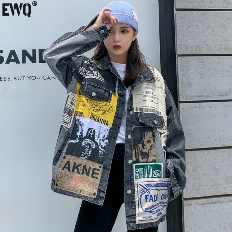 Женская ВИНТАЖНАЯ ДЖИНСОВАЯ КУРТКА EWQ, черная джинсовая куртка оверсайз с длинными рукавами, аппликацией и надписью, с вышивкой, новинка 2022