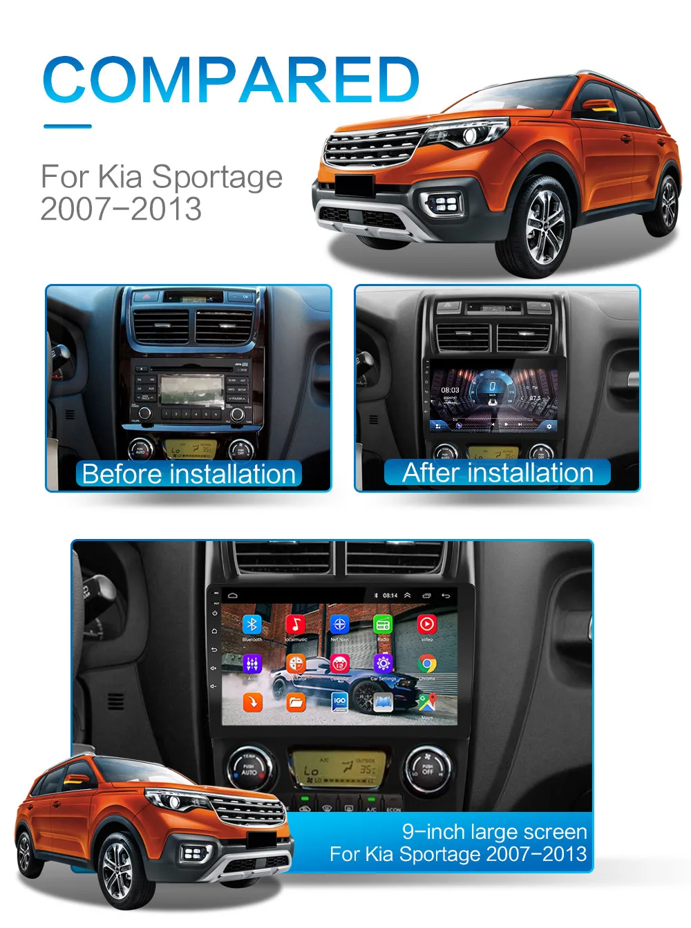 Android 10,0 автомобильное радио для Kia Sportage 2 2007 2008 2009 2010 2011 2012 2013 9 дюймов 1024*600 8 ядер wifi Bluetooth Видео Аудио мультимедиа 2 din автомобильный dvd плеер