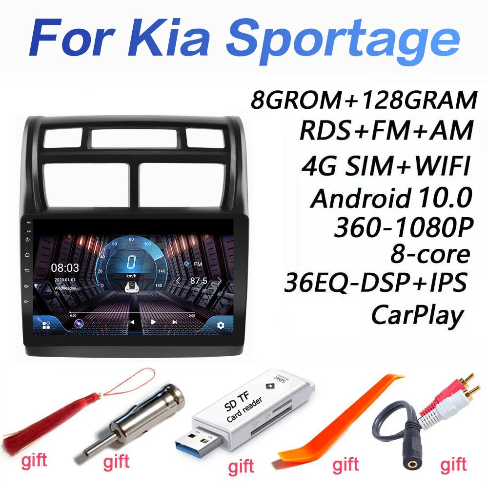 Автомобильная Мультимедийная система 8G + 128G DSP 2 din Android 8. 0 4G сетевой автомобильный радиоприемник мультимедийный видеоплеер для Kia Sportage 10,0 2007 2008-2009 carplay WiFi BT