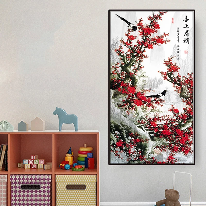 Китайский стиль простой цветок сливы холст для живописи современног...