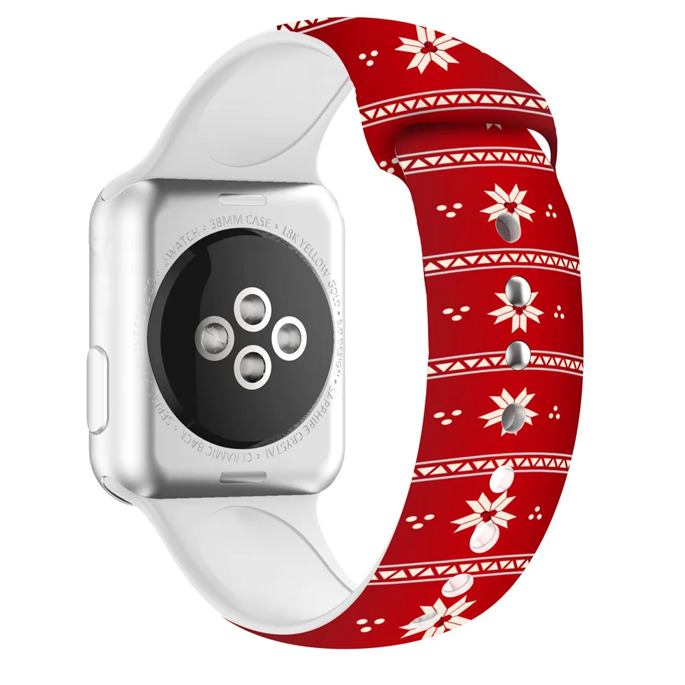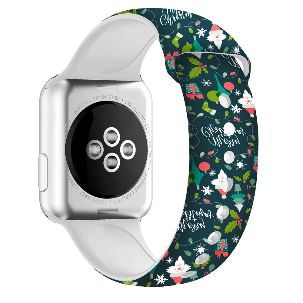 Ремешок силиконовый для Apple watch 6 band 44 мм 40 мм 42 мм 38 мм, спортивный браслет для наручных часов iWatch series 6 5 4 3 SE 42 мм, Рождественский