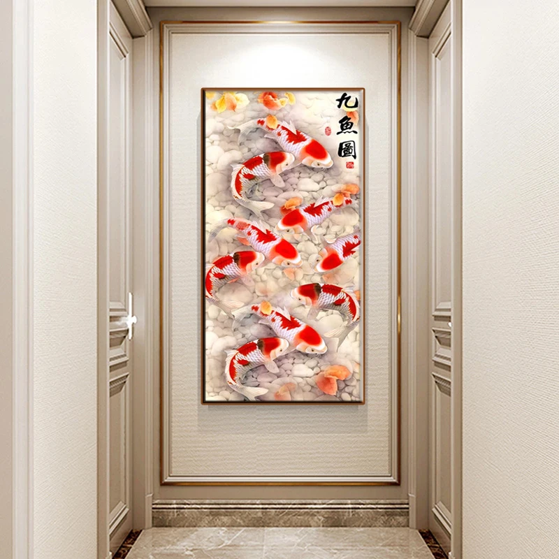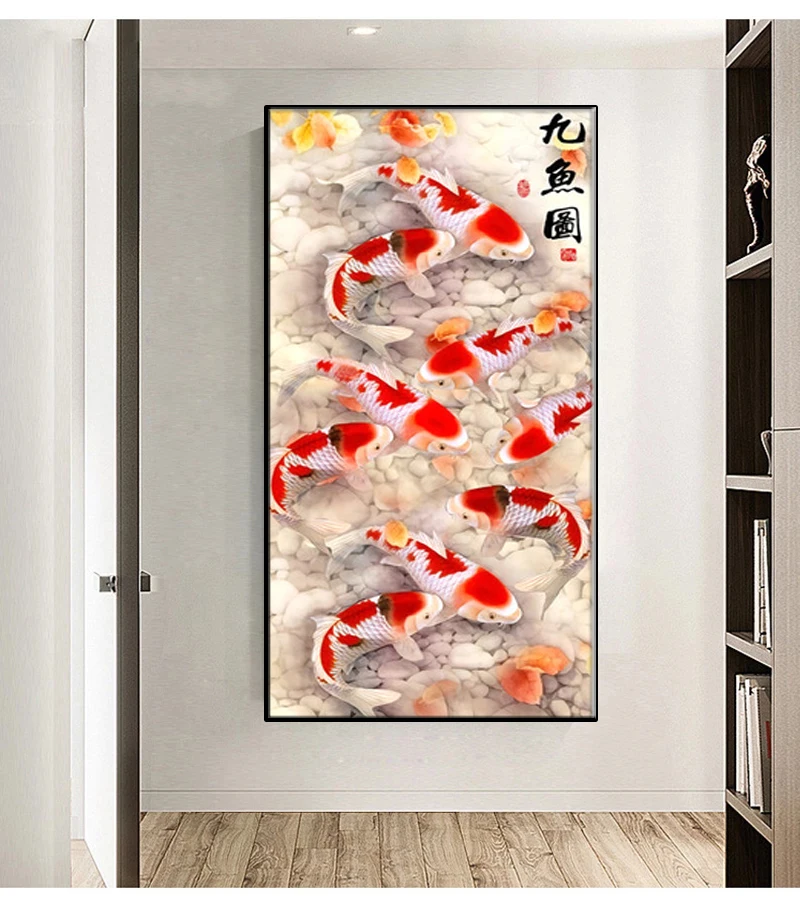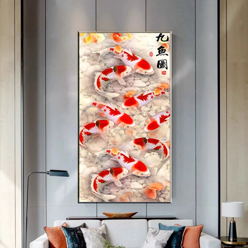 Картина на холсте с изображением китайских цветов и рыбок