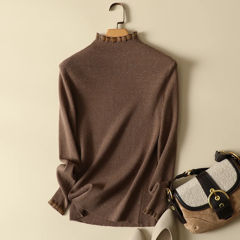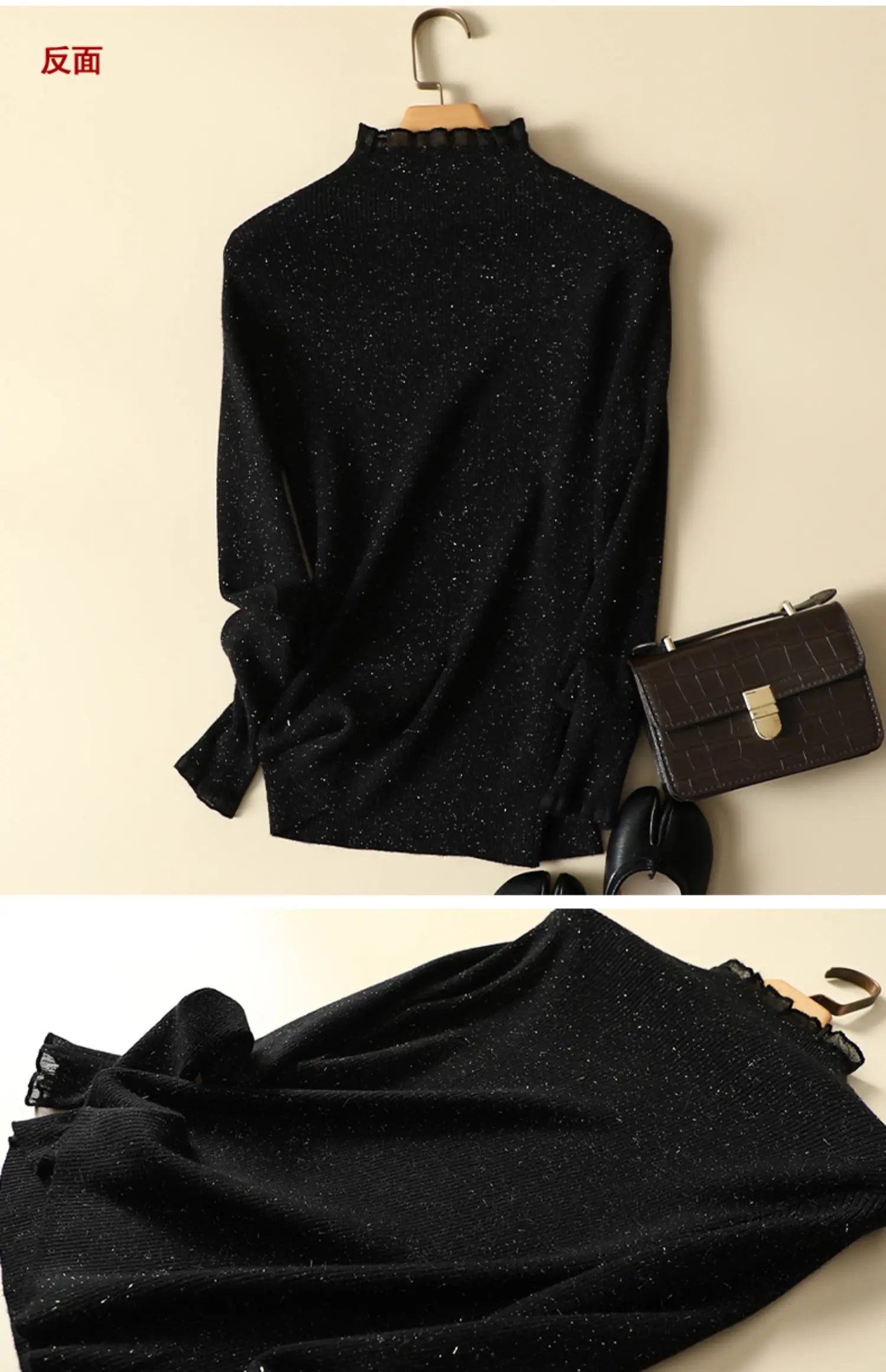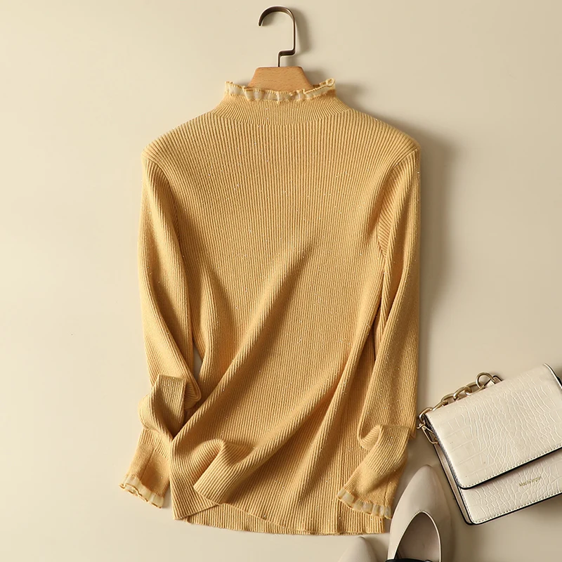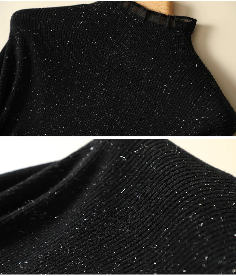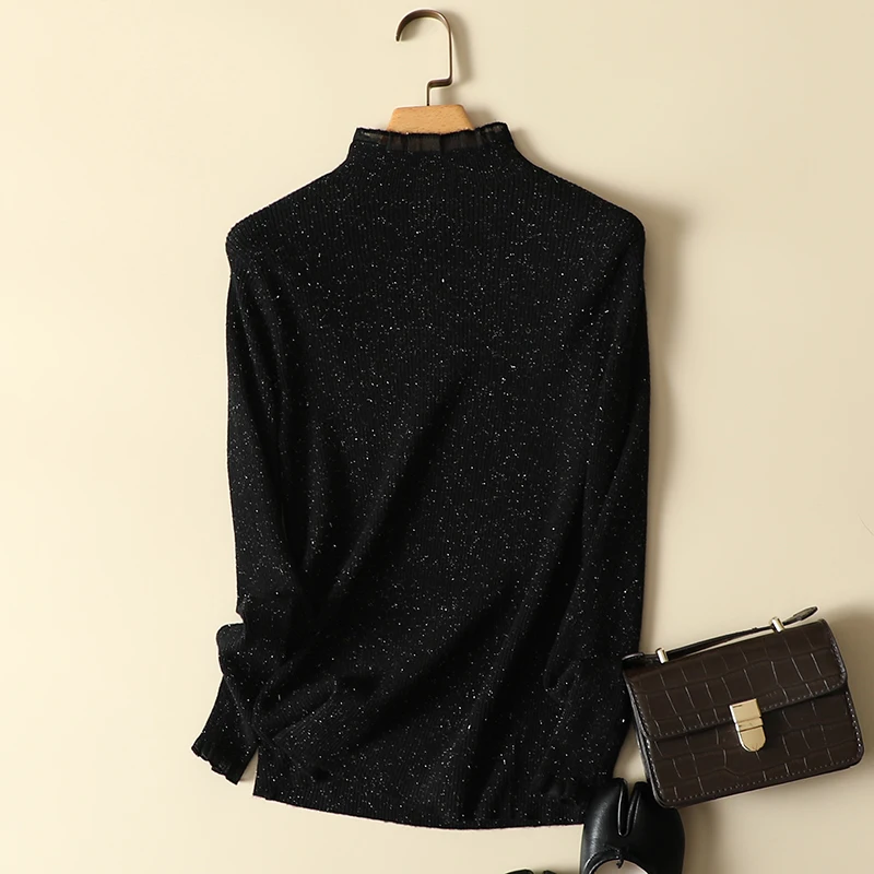 Женский трикотажный свитер с длинным рукавом, с кружевом, в стиле пэчворк