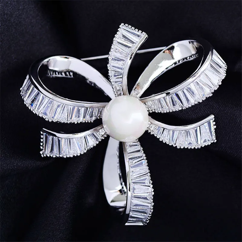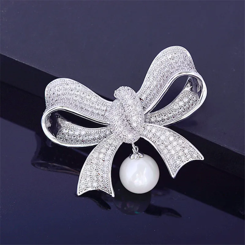 OKILY нежные женские броши ювелирные изделия аксессуары-кисточки жемчуг Циркон бант брошь булавка милый бант на лацкан булавка для новогоднего подарка