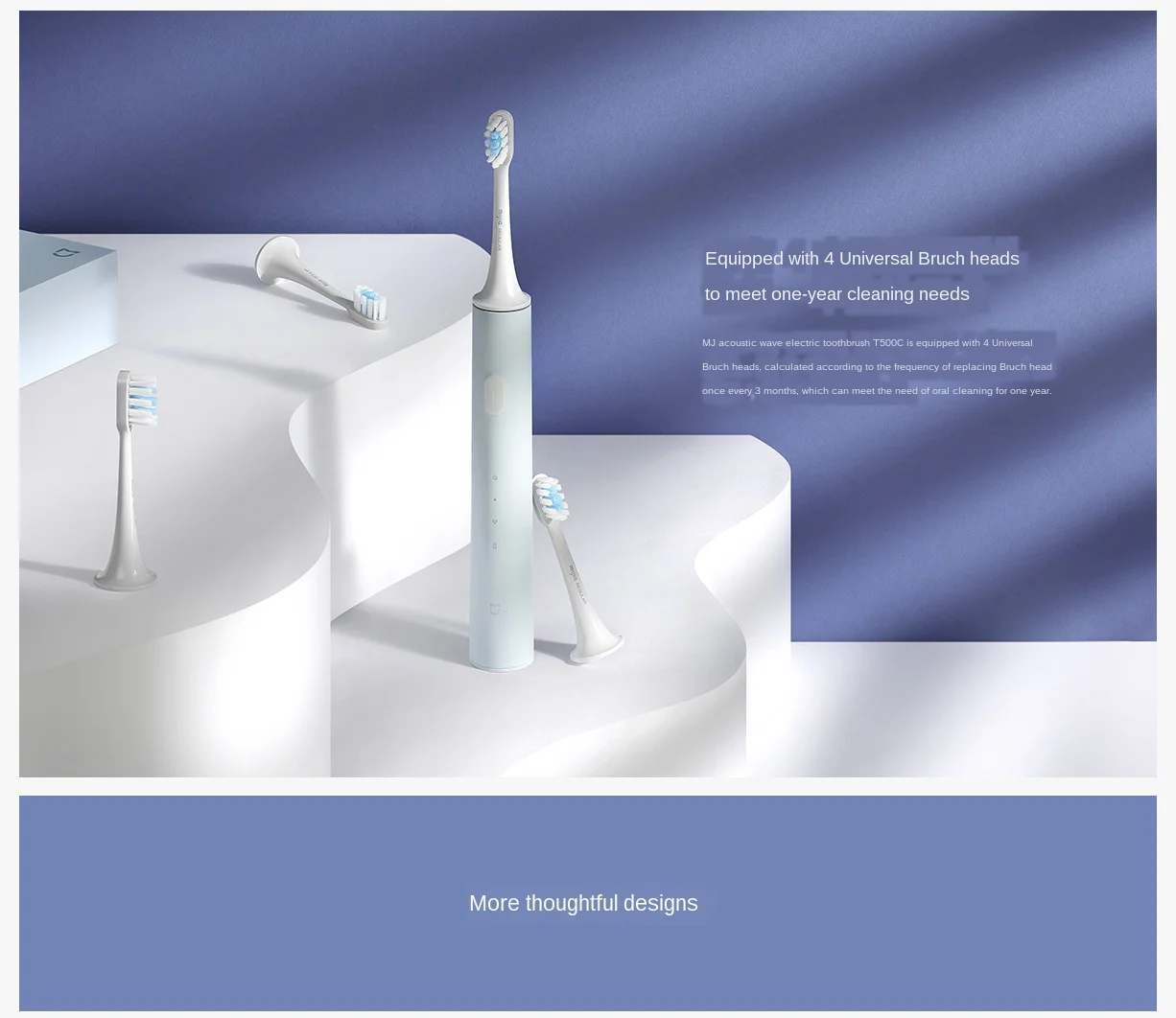 Электрическая зубная щетка Xiaomi Mijia Sonic T500C, беспроводная перезаряжаемая Водонепроницаемая ультразвуковая автоматическая зубная щетка MI, работает с приложением Mijia