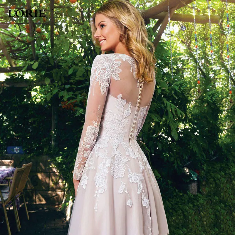 Женское свадебное платье с длинным рукавом, V-образным вырезом и пуговицами