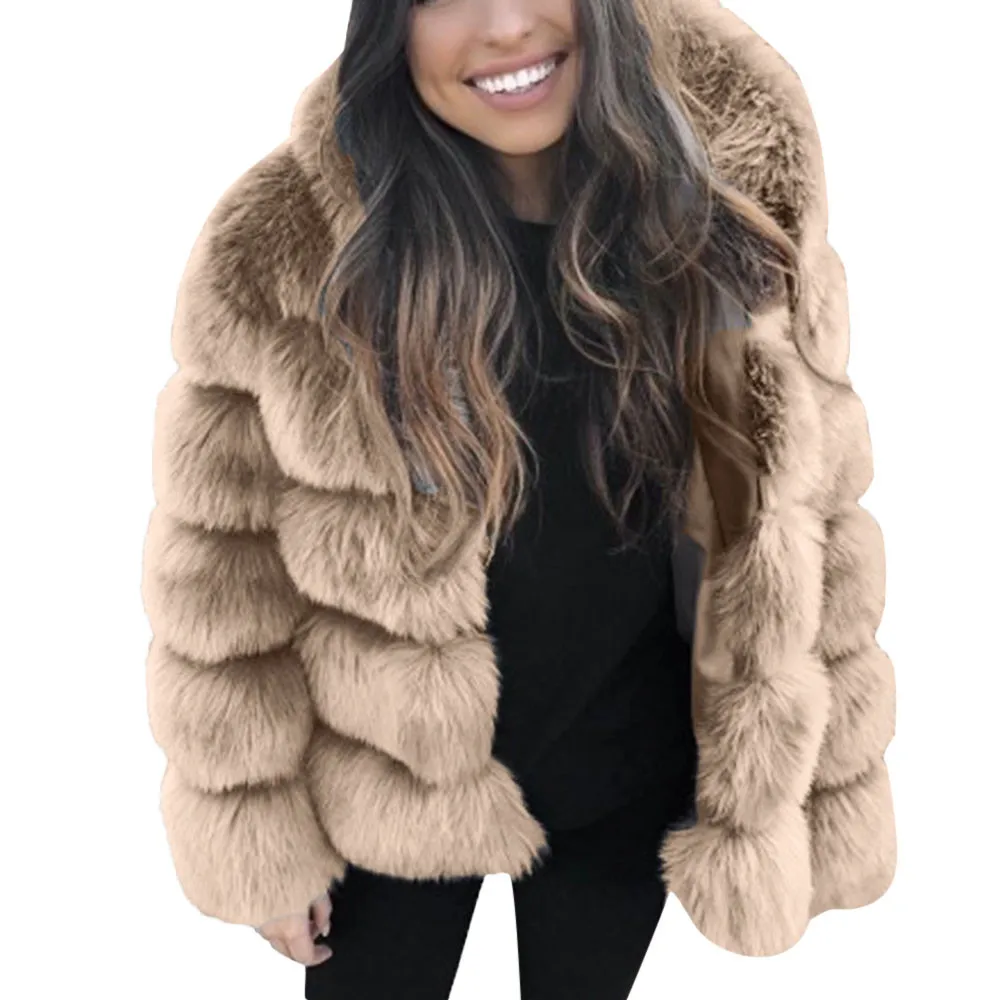 Высококачественные меховые укороченные пальто и куртки из искусственного меха, женское пушистое пальто с капюшоном, зимняя меховая куртка