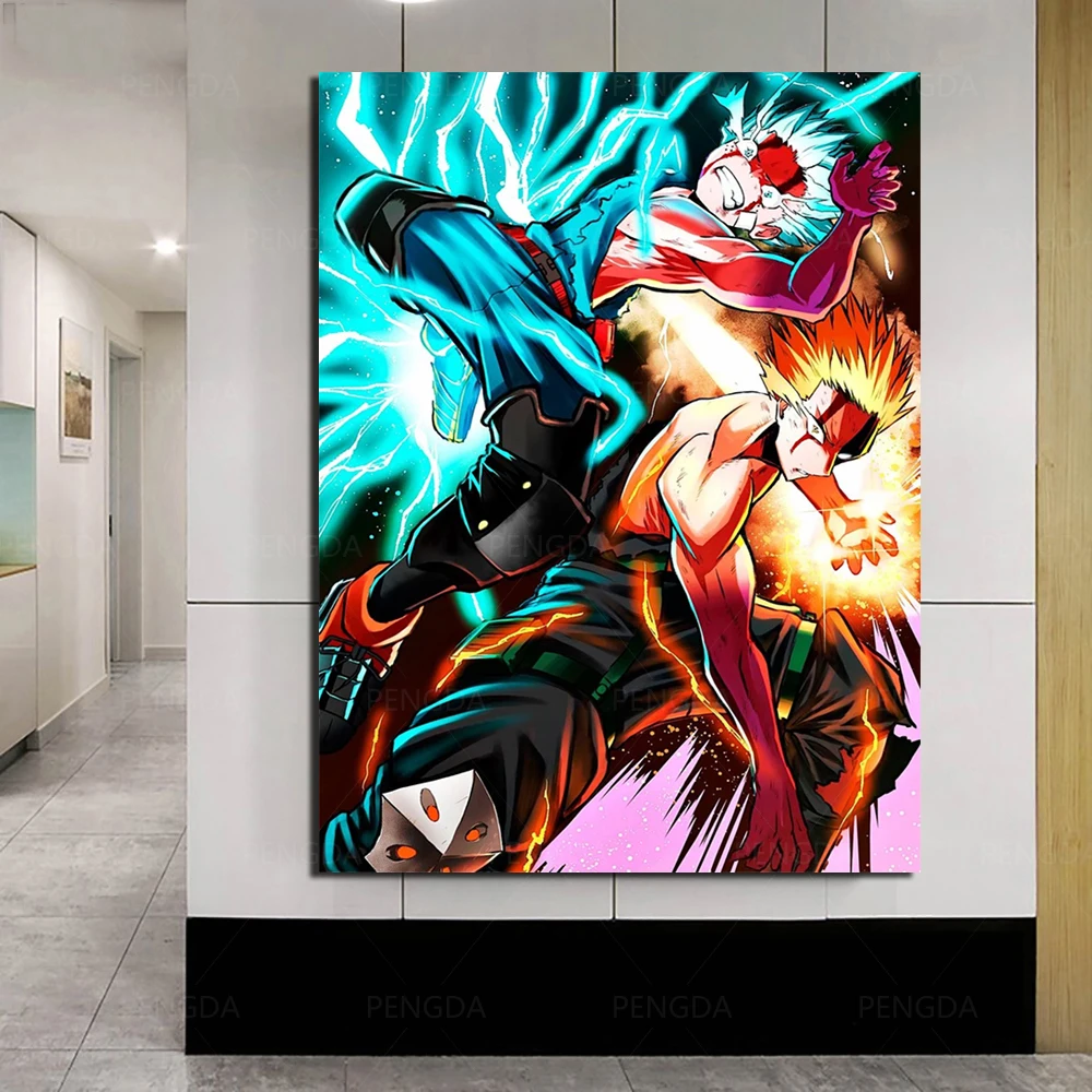 Холст, настенная живопись, Деку и Тодороки бакуго, эстетическое ани...