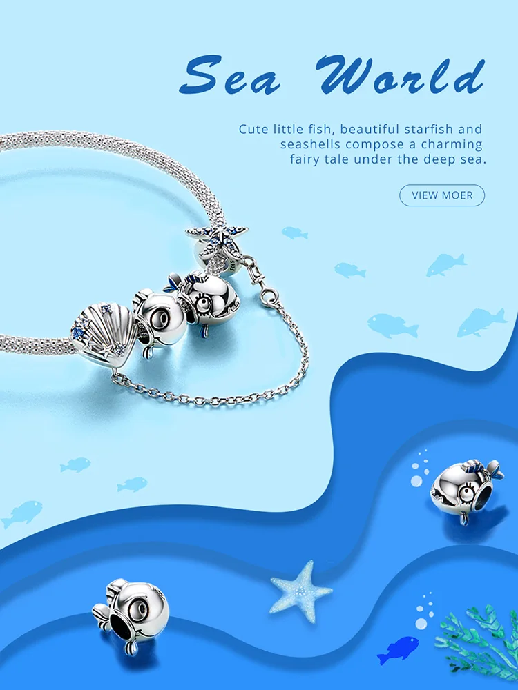 Океан серии 925 серебро бусины безопасносные браслеты в виде морско...