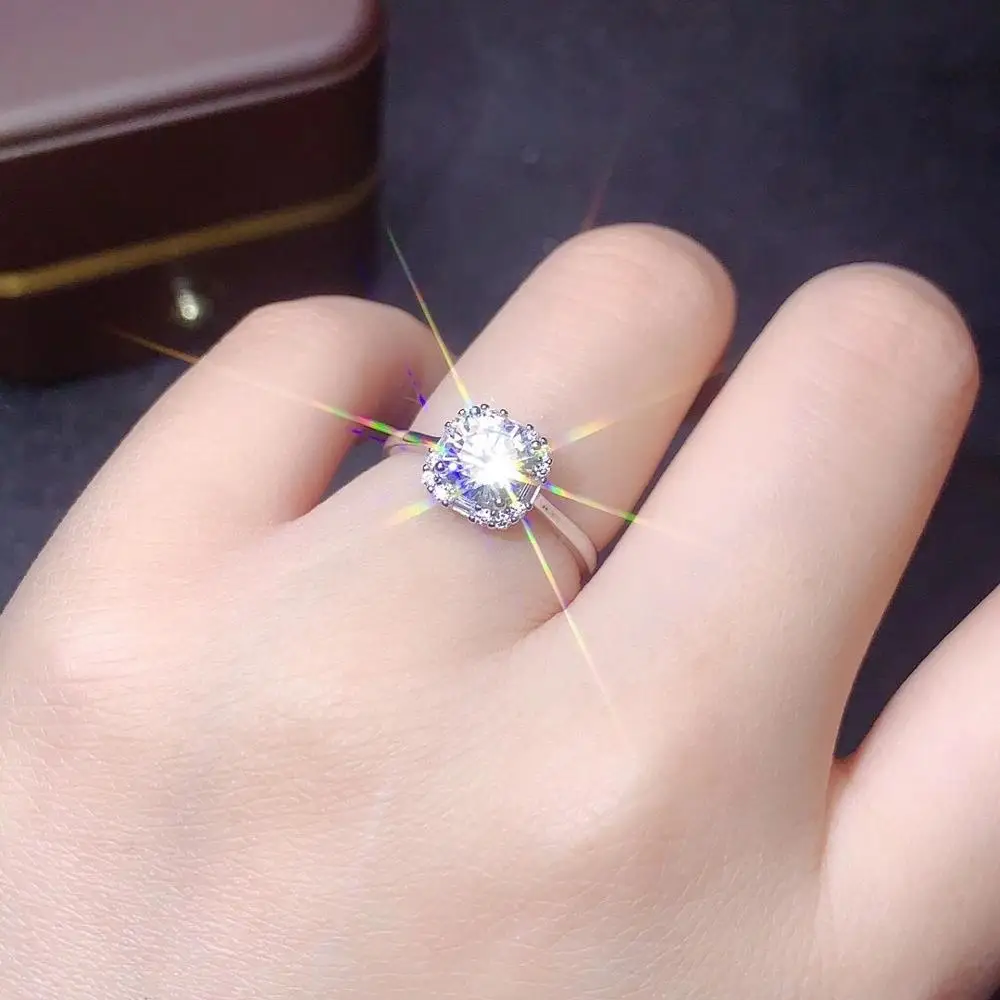 Кольцо женское из серебра 925 пробы с муассанитом 1-2 карата D, VVS1