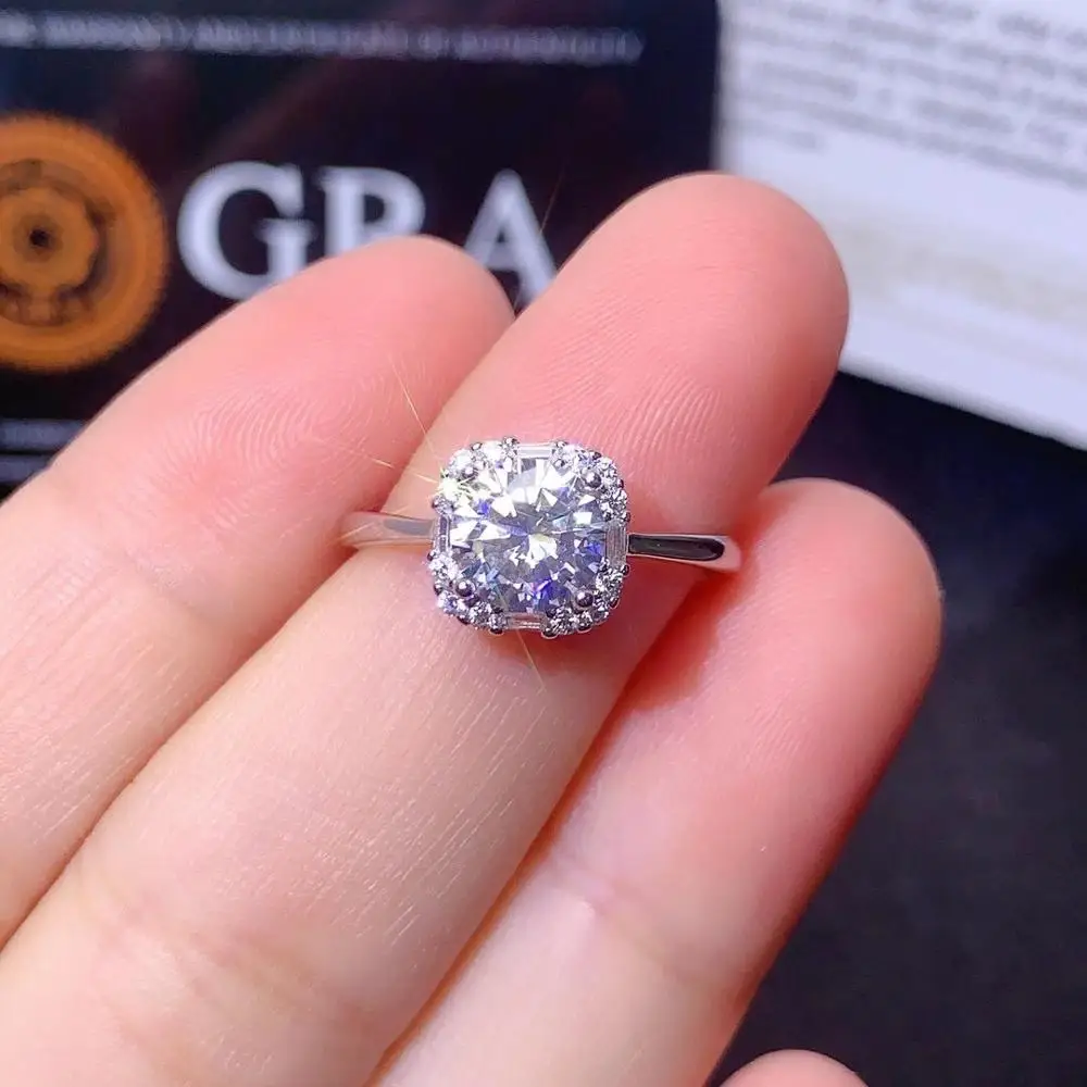 Кольцо с муассанитом Geoki VVS1, 925 пробы, серебряная Подушка граненый, 1 карат