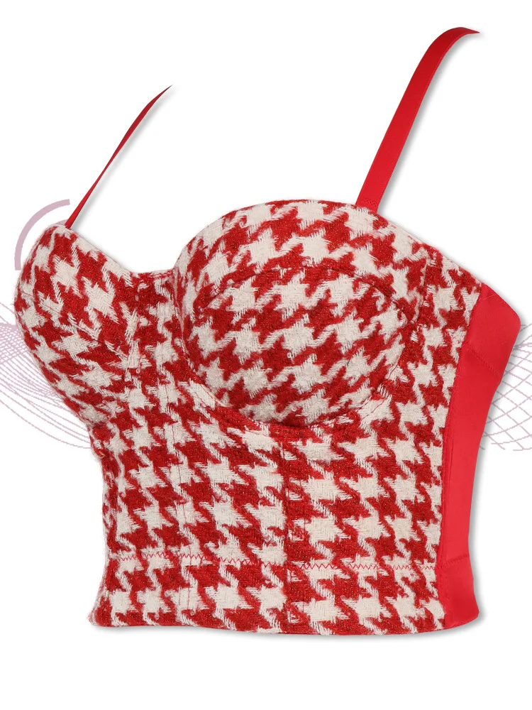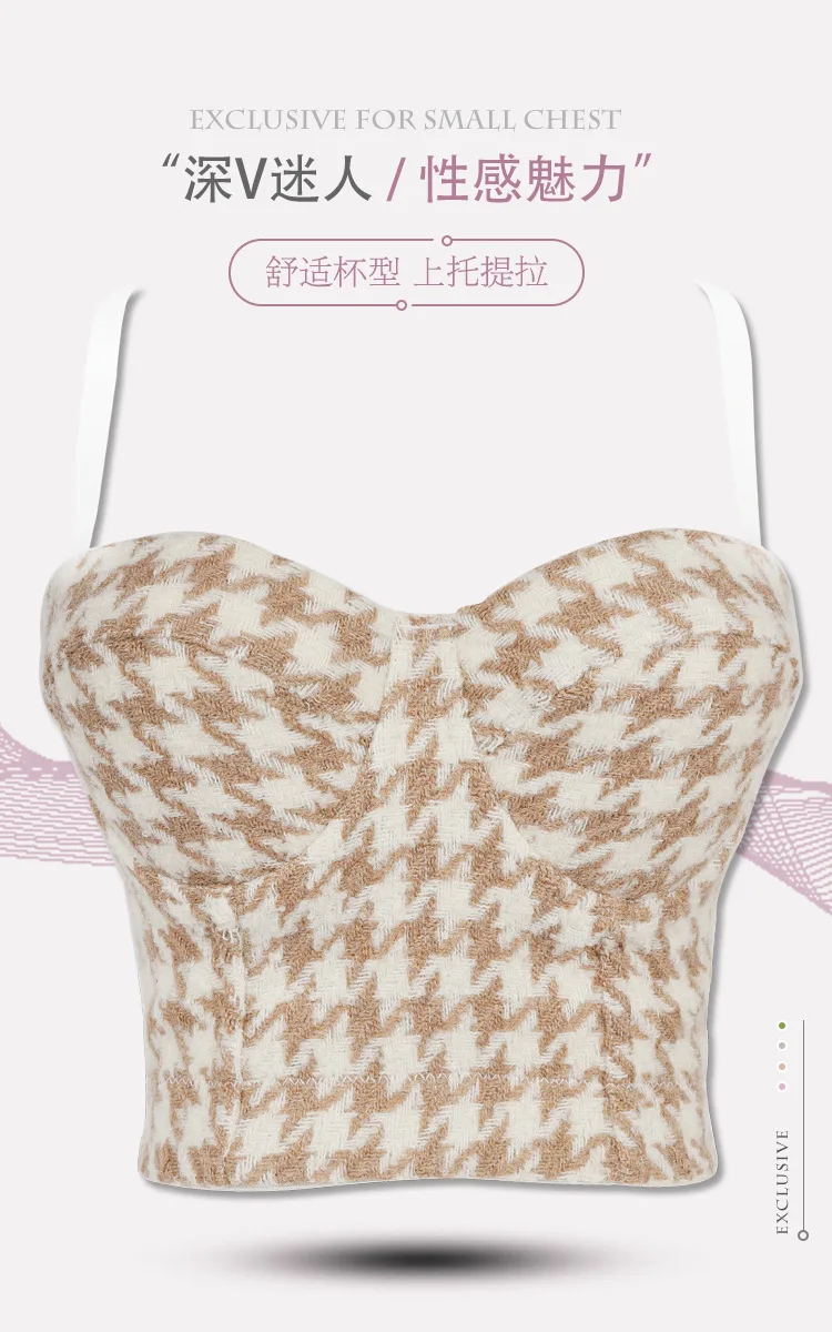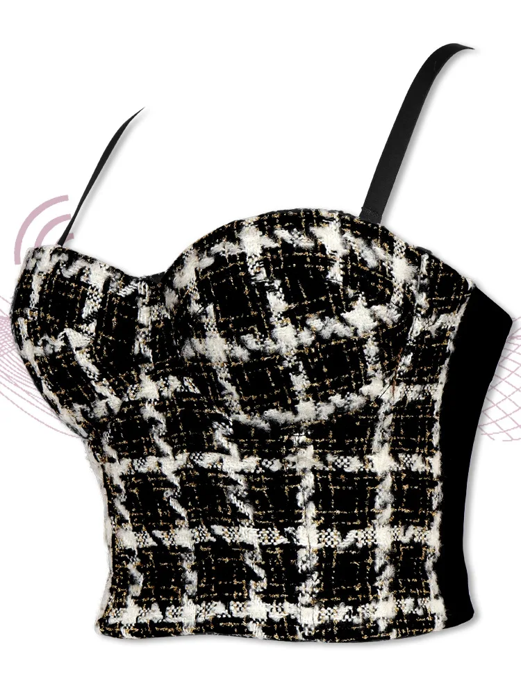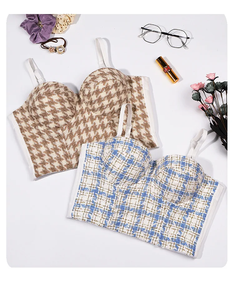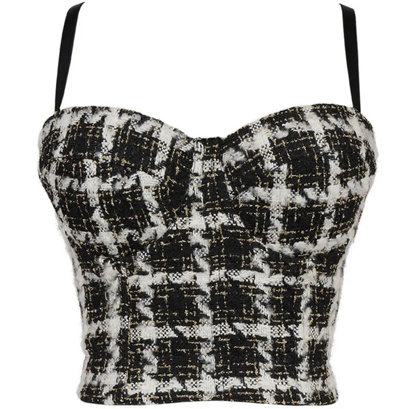 2020 Новый Для женщин Свободный Топ в клетку с рисунком гусиные лапки Хит Цвет из шерстяной ткани высокого качества, обрезанный Том, бюстье, бюстгальтер для ночного клуба вечерние топы с бретельками