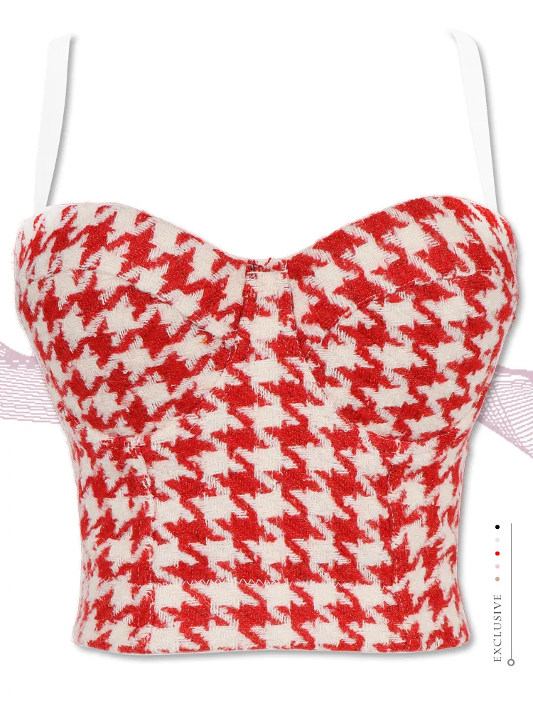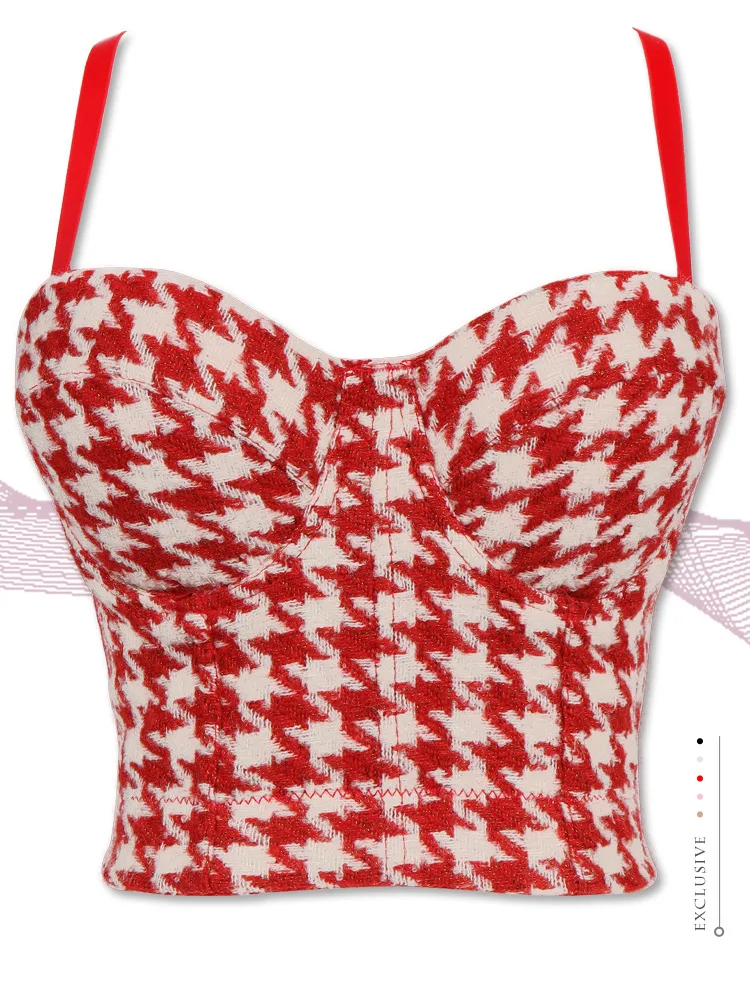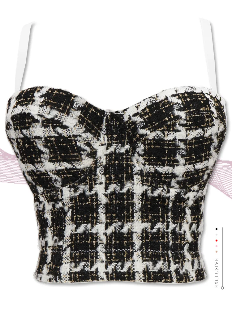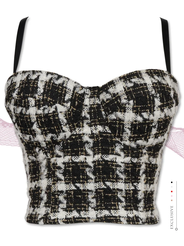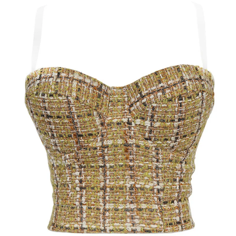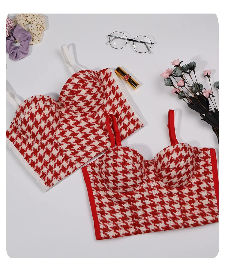 2020 Новый Для женщин Свободный Топ в клетку с рисунком гусиные лапки Хит Цвет из шерстяной ткани высокого качества, обрезанный Том, бюстье, бюстгальтер для ночного клуба вечерние топы с бретельками